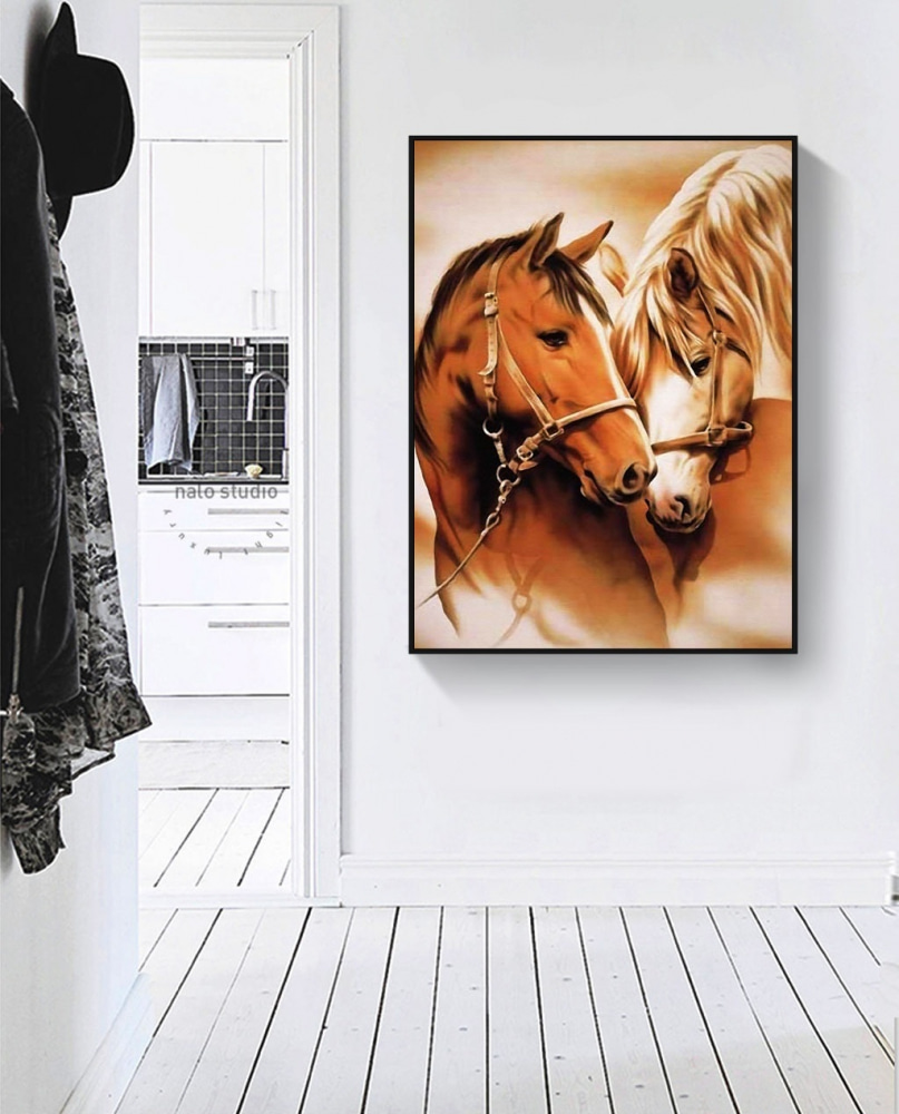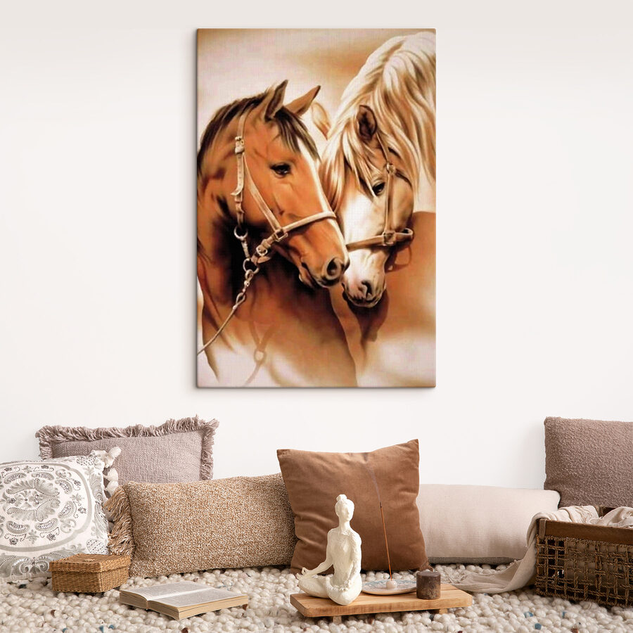 Acest print pe pânză, care înfățișează doi cai împărtășind un moment tandru și liniștit, este pur și simplu minunat. Vă atrage, nu-i așa? Imaginează-ți – o scenă blândă de pace pură și conexiune, chiar pe peretele tău. Aproape că poți auzi sforăiturile suave și simți respirația blândă. Imaginați-vă acest lucru în camera de zi sau într-un colț de lectură confortabil. Adaugă o vibrație liniștitoare, ca și cum caii ar șopti un secret pe care numai ei îl știu. În plus, iubitorilor de cai, aceasta este pentru voi. Este ca și cum ai aduce o parte din pășune chiar în spațiul tău. Vă poartă într-o călătorie emoțională – de fiecare dată când vă uitați la ea! Pun pariu că va stârni și câteva conversații interesante. Cine ar fi crezut că o imagine simplă poate crea atât de multă căldură și seninătate? Un amestec perfect!
