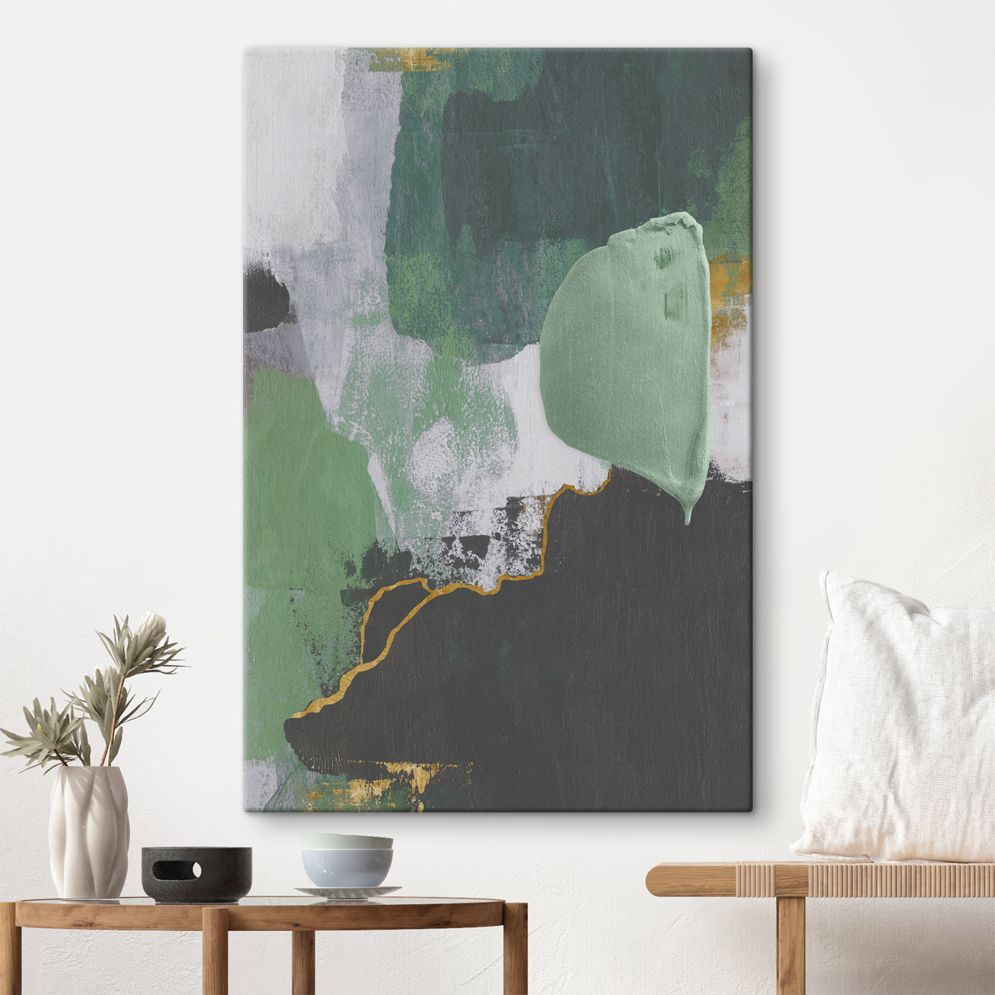 Transformați orice perete într-un subiect de conversație cu această imprimare unică pe pânză – textură abstractă verde cu tușe stratificate. Aceasta reunește verdele răcoritor și tonurile profunde ale pământului, creând un amestec perfect care se simte atât liniștit, cât și revigorant. Imaginați-vă că intrați într-o cameră și simțiți instantaneu un val de calm, ca o plimbare într-o pădure luxuriantă. Fie că este într-un colț de lectură confortabil sau într-un birou modern, această piesă emană o vibrație care spune: “Sunt aici pentru a inspira creativitatea”. În plus, tușele jucăușe ar putea stârni un vis cu ochii deschiși sau două. Luați-o și lăsați pereții dvs. să respire puțină emoție!