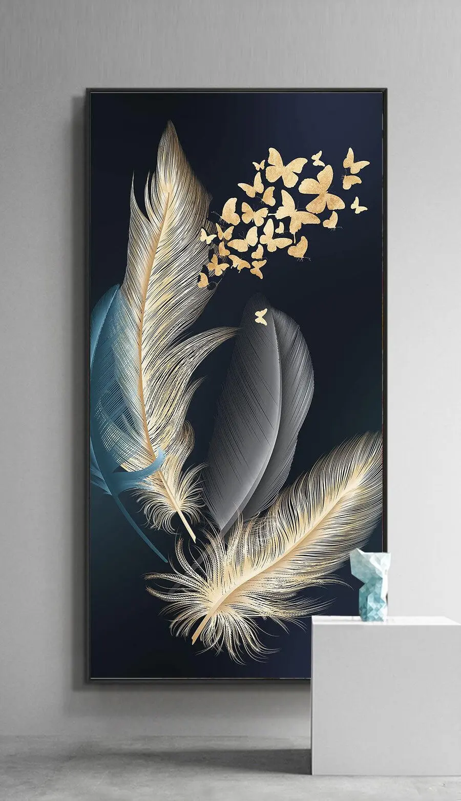 Această imprimare pe pânză, “Fluturi apar din vise șoptite”, este ca o șoaptă blândă a magiei naturii, perfectă pentru a lumina orice spațiu! Imaginați-vă-o agățată într-un colț de lectură confortabil sau deasupra unui pat liniștit – fluturii aceia par să danseze în gândurile voastre, nu-i așa? Fiecare pană adaugă un strop de fantezie, creând un minunat starter de conversație. Este ca și cum ar putea zbura de pe pânză dacă vă holbați prea mult. Ideală pentru cei care apreciază o notă de delicatețe și eleganță în decorul locuinței lor. Un mic strop de vis nu face rău nimănui, nu-i așa?