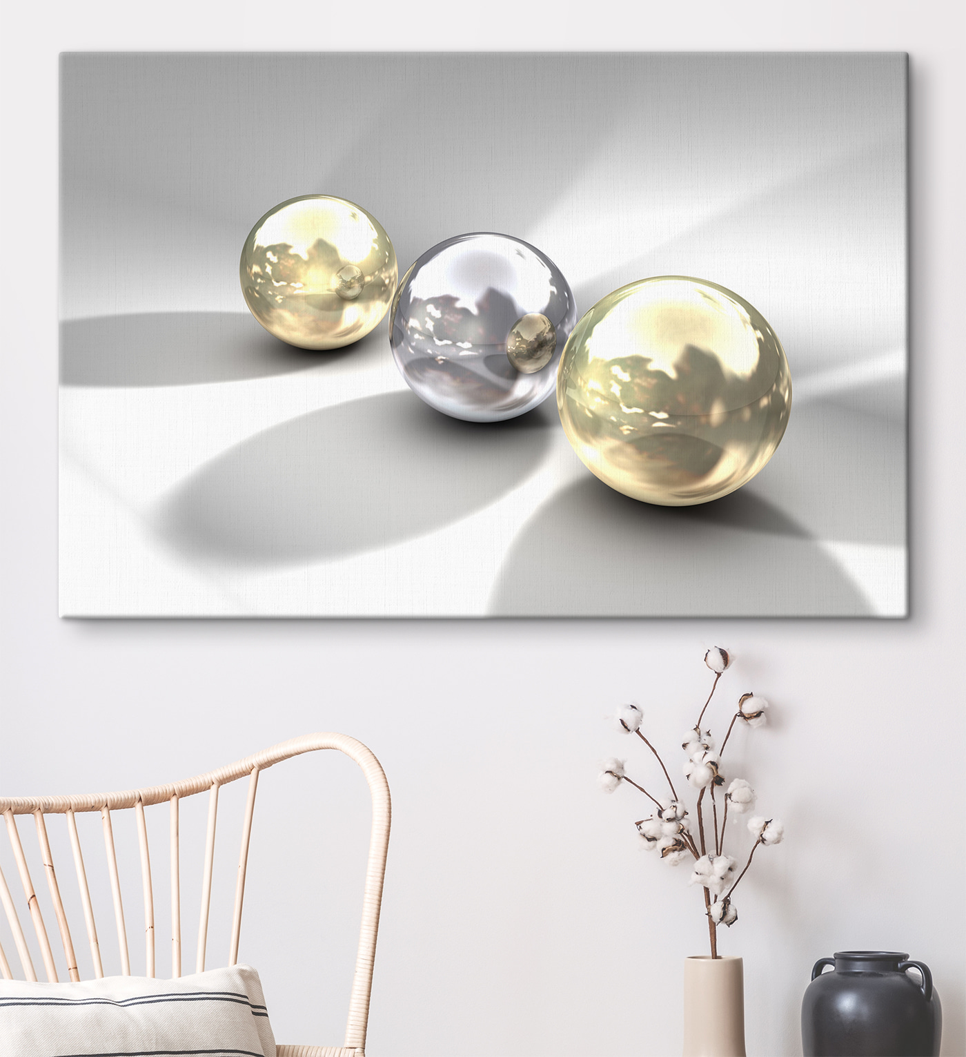 Luminează orice spațiu cu această imprimare uimitoare pe pânză cu sfere reflectorizante. Imaginați-vă-le așezate în camera dvs. preferată, captând fără efort lumina soarelui și creând un dans jucăuș al umbrelor. Este genul de artă care te face să te oprești și să meditezi – care este povestea din spatele acestor sfere? Ascund ele secrete din altă lume? Această piesă invită un pic de fantezie în casa ta, îmbinându-se perfect cu decorul modern sau clasic. Perfectă pentru cei care doresc să inițieze o conversație fără a fi prea pretențioși, aceasta adaugă atingerea potrivită de eleganță și intrigă.