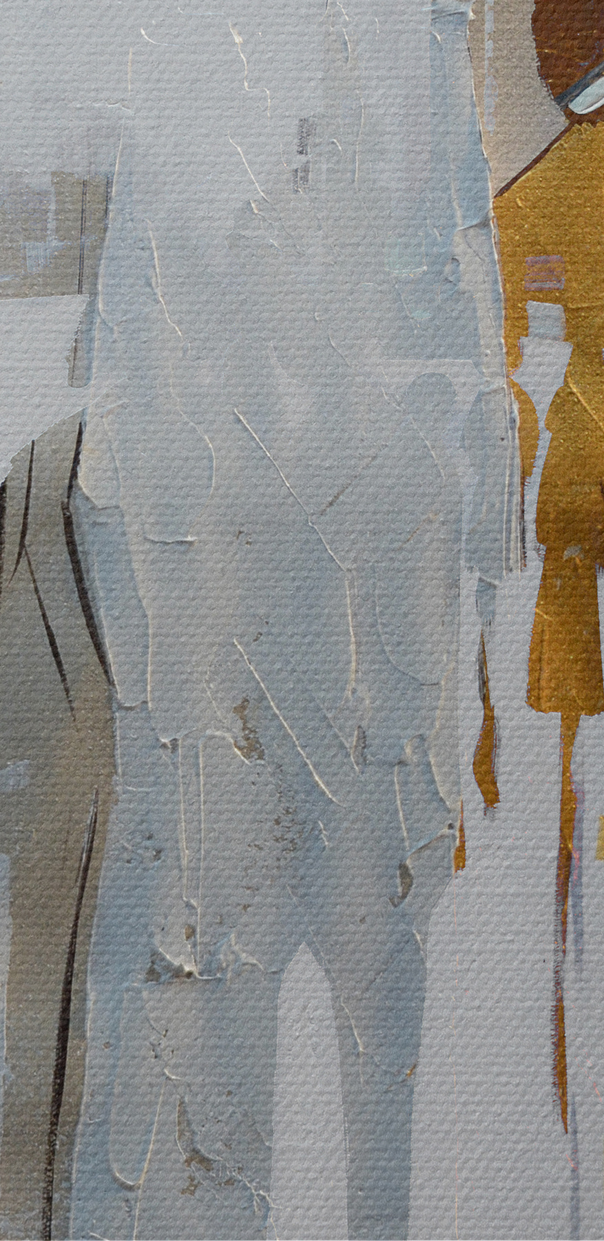 Intrați într-o lume în care viața urbană dansează într-o ceață visătoare. Această artă pe pânză, cu figuri abstracte care se plimbă printr-un peisaj urban cețos, este ca un imbold ușor pentru imaginația dvs. Imaginați-vă relaxându-vă după o zi lungă, privind această pictură murală, lăsându-vă purtat de ea într-un vis fără sfârșit. Paleta discretă învelită în forme moi surprinde esența vieții de oraș, păstrând-o în același timp fără efort. Este perfectă pentru a conferi oricărei încăperi acel aer de “tocmai a fost renovată” fără ca măcar să încercați. Un starter de conversație? Absolut. O modalitate de a exprima o estetică unică? Cu siguranță. Această operă de artă invită privitorii să simtă pulsul orașului în timp ce se bucură de un moment de calm. Este subtilă, intrigantă și exact ceea ce trebuie pentru a anima orice perete.