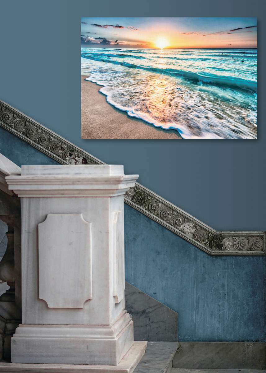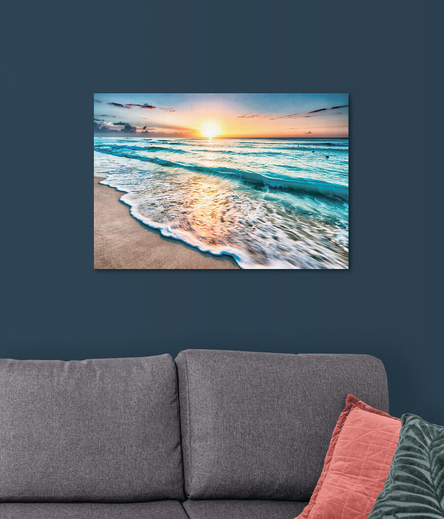 Transformați orice spațiu cu această imprimare uimitoare pe pânză, “Waves on a Beach”. Imaginați-vă că intrați în camera dvs. și sunteți întâmpinați de bătaia blândă a valurilor, chiar dacă vă aflați la kilometri depărtare de ocean. Această operă de artă surprinde momentul perfect când soarele coboară sub orizont, pictând cerul în nuanțe superbe. Este ca o mini-vacanță chiar pe peretele tău. Imaginați-vă seri confortabile, poate cu o carte bună sau un pahar de ceva răcoritor. Este o evadare vizuală care aduce căldură și liniște, trezind amintiri despre degetele de la picioare cu nisip și briza plajei. Perfect pentru oricine tânjește după o bucată de fericire la malul mării!