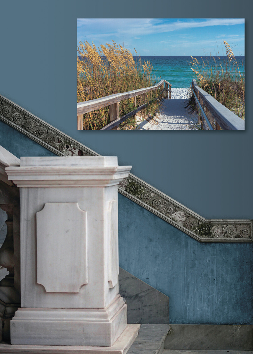 Imaginați-vă această pânză atârnată pe perete – “Cer albastru cu nori albi”. Nu este o adiere de aer proaspăt? O singură privire și ești transportat instantaneu pe o plajă liniștită într-o zi însorită. Nisipul moale sub picioare, briza blândă a mării în păr și cerul albastru nesfârșit deasupra ta. Perfect pentru oricine are o slăbiciune pentru mare sau are nevoie doar de o doză zilnică de seninătate. Are acea atingere de calm japonez, dar se potrivește perfect stilurilor populare sau vibrațiilor de plajă. Fie că împodobește un living sau creează un colț liniștit de lectură, această piesă este ca o mini-vacanță. Fiecare. Singură. Zi.