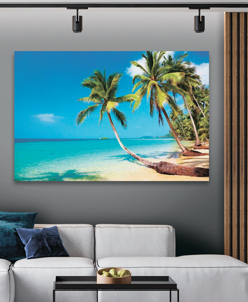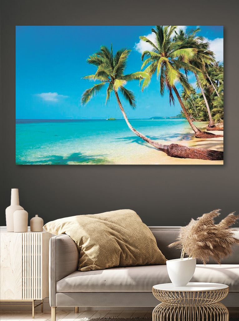 Imaginați-vă că pășiți în camera dvs. de zi și sunteți întâmpinați de cea mai rafinată priveliște a palmierilor care se leagănă ușor pe o plajă virgină. Această imprimare pe pânză, numită pe bună dreptate “Palmieri pe o plajă”, este ca o felie personală de paradis – chiar pe peretele dvs. Perfect pentru diminețile mohorâte de iarnă în care aveți nevoie de un pic de susținere sau oricând doriți o doză de calm din natură.