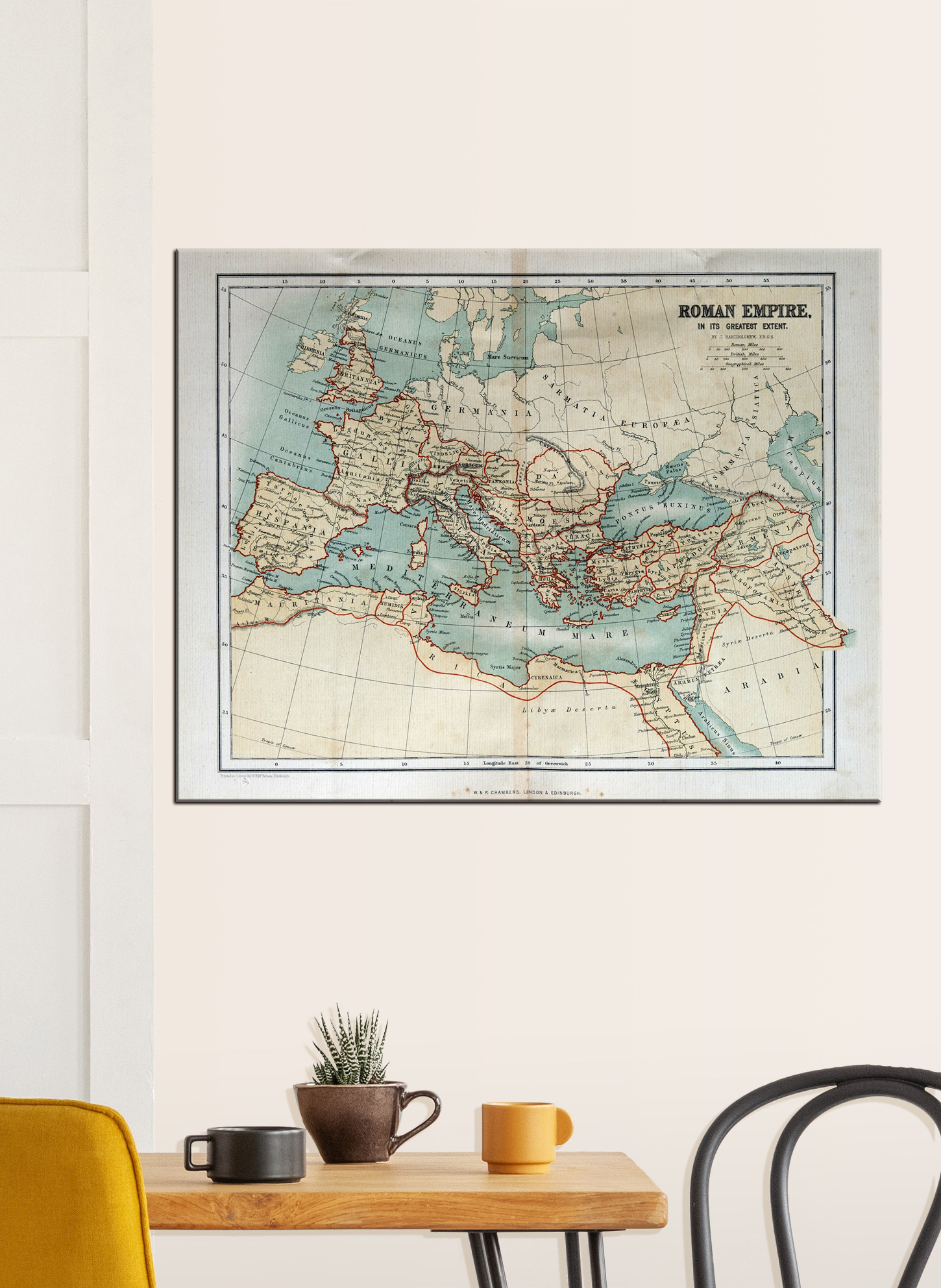 Nu este doar o simplă hartă; este un starter de conversație. Prietenii vin la tine? Bam, ai povești despre Roma antică de explorat. Perfectă pentru cei care iubesc un pic de istorie la cafeaua de dimineață sau care doresc doar ceva unic pentru a-și condimenta decorul. Aproape că poți auzi ecourile slabe ale marșului armatelor antice și ale piețelor romane pline de viață.