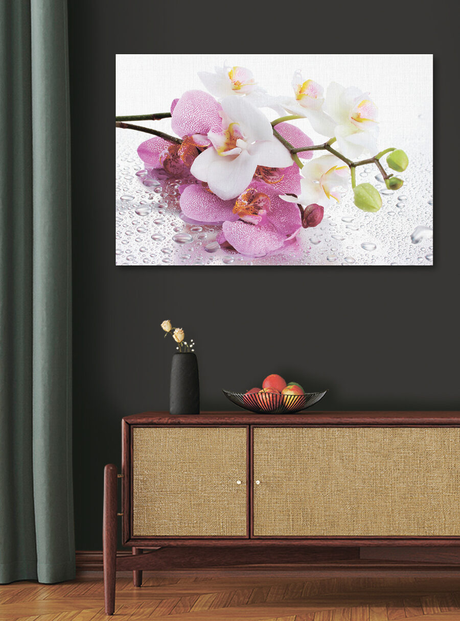 Îmbunătățiți spațiul dvs. cu această imprimare uimitoare pe pânză cu orhidee delicate sărutate de picături moi de apă. Este ca și cum ai aduce o felie de natură în interior, fără a mai fi nevoie de udare. Imaginați-vă că vă treziți în fiecare zi cu această explozie de culoare – petalele vibrante dansează practic pe pânză! Perfect pentru a decora un living sau pentru a adăuga o notă de eleganță unui dormitor. În plus, stârnește o mică bucurie care amintește tuturor că frumusețea se găsește adesea în cele mai simple lucruri. Cine nu și-ar dori să se simtă înconjurat de o astfel de prospețime durabilă? Pur și simplu atârnă-l și privește cum pereții tăi respiră o nouă viață.