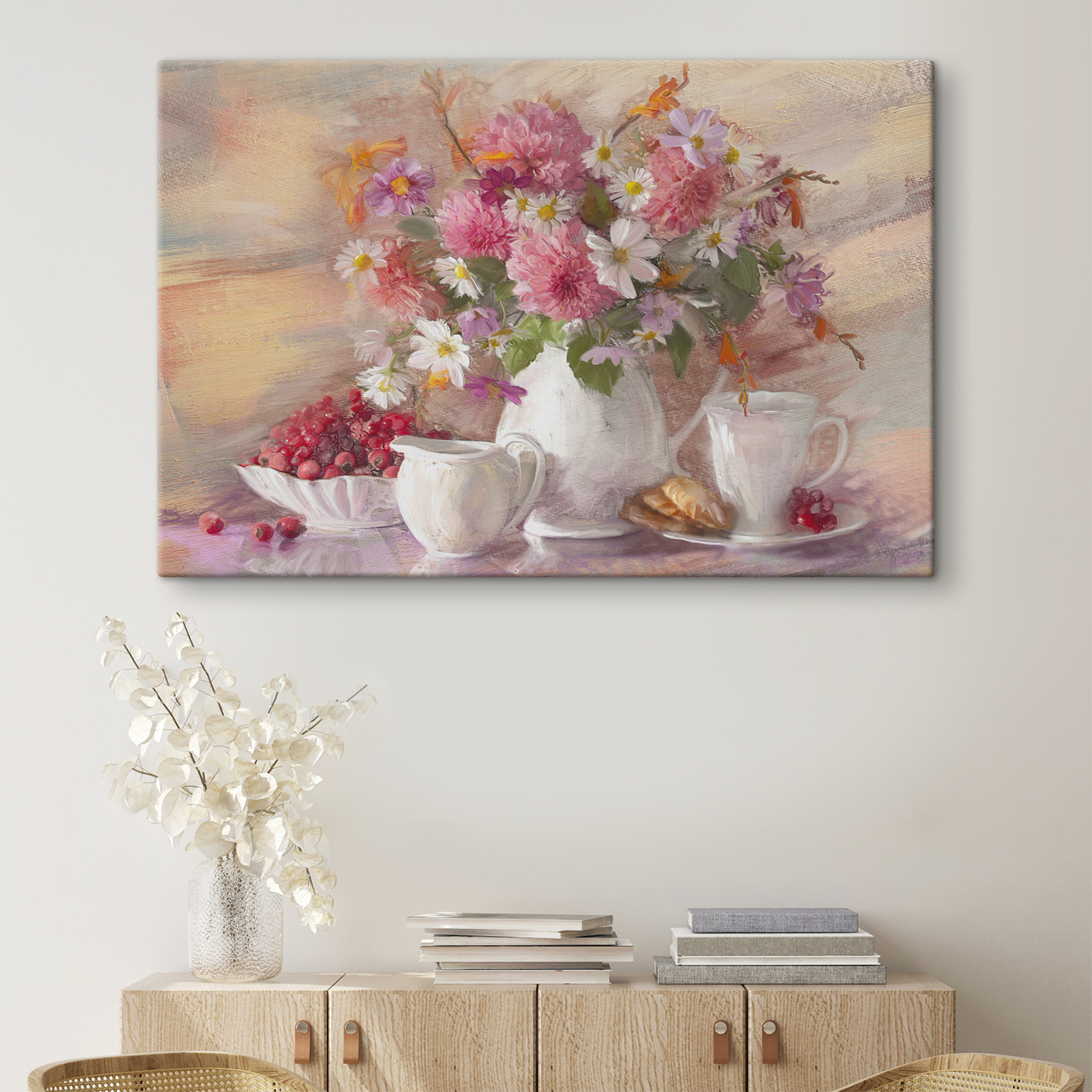 Înveseliți orice cameră cu această imprimare încântătoare pe pânză cu flori într-o vază. Este ca și cum ai aduce o grădină veselă chiar în casa ta, fără alergii. Culorile blânde și aranjamentul jucăuș pot stârni bucurie, făcându-l perfect pentru un colț confortabil sau deasupra unei mese de mic dejun. Imaginați-vă sorbind cafeaua în timp ce vă bucurați de această priveliște vibrantă – ar putea face diminețile puțin mai luminoase. În plus, se potrivește bine cu acea colecție aleatorie de bibelouri. Nu este doar un decor; este un stimulent pentru starea de spirit. Cine nu și-ar dori o astfel de vibrație?
