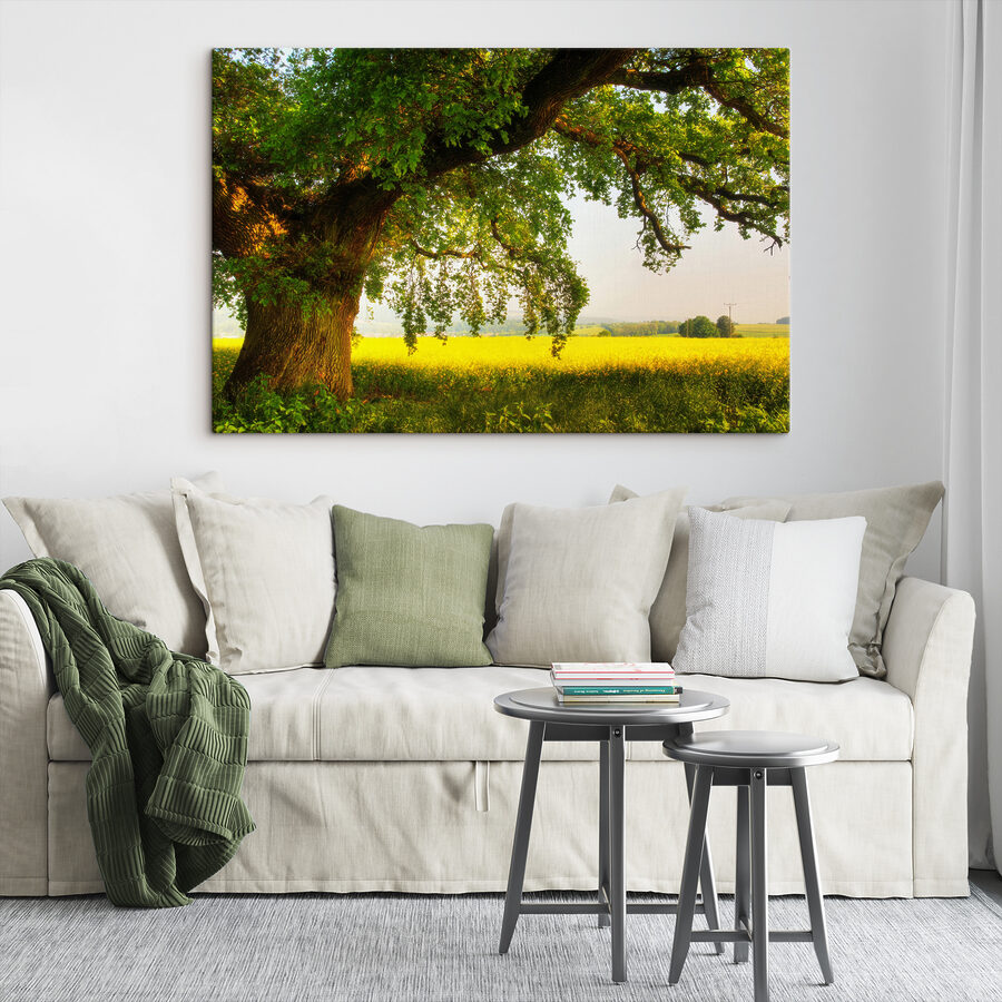 Aduceți frumusețea senină a naturii în interior cu această imprimare uimitoare pe pânză care prezintă un copac maiestuos care își aruncă umbra peste un câmp însorit. Imaginați-vă o după-amiază leneșă petrecută sub acest coronament întins, briza blândă purtând parfumul dulce al florilor înflorite. Perfectă pentru a înveseli orice cameră, această operă de artă vă invită să visați cu ochii deschiși la picnicuri și evadări liniștite. Este ca și cum ai avea o felie de aer liber chiar pe perete, făcând fiecare zi un pic mai liniștită. Cine nu și-ar dori să se relaxeze într-un spațiu atât de frumos? Adaugă un strop de farmec inspirat din natură și lasă-ți pereții să respire!
