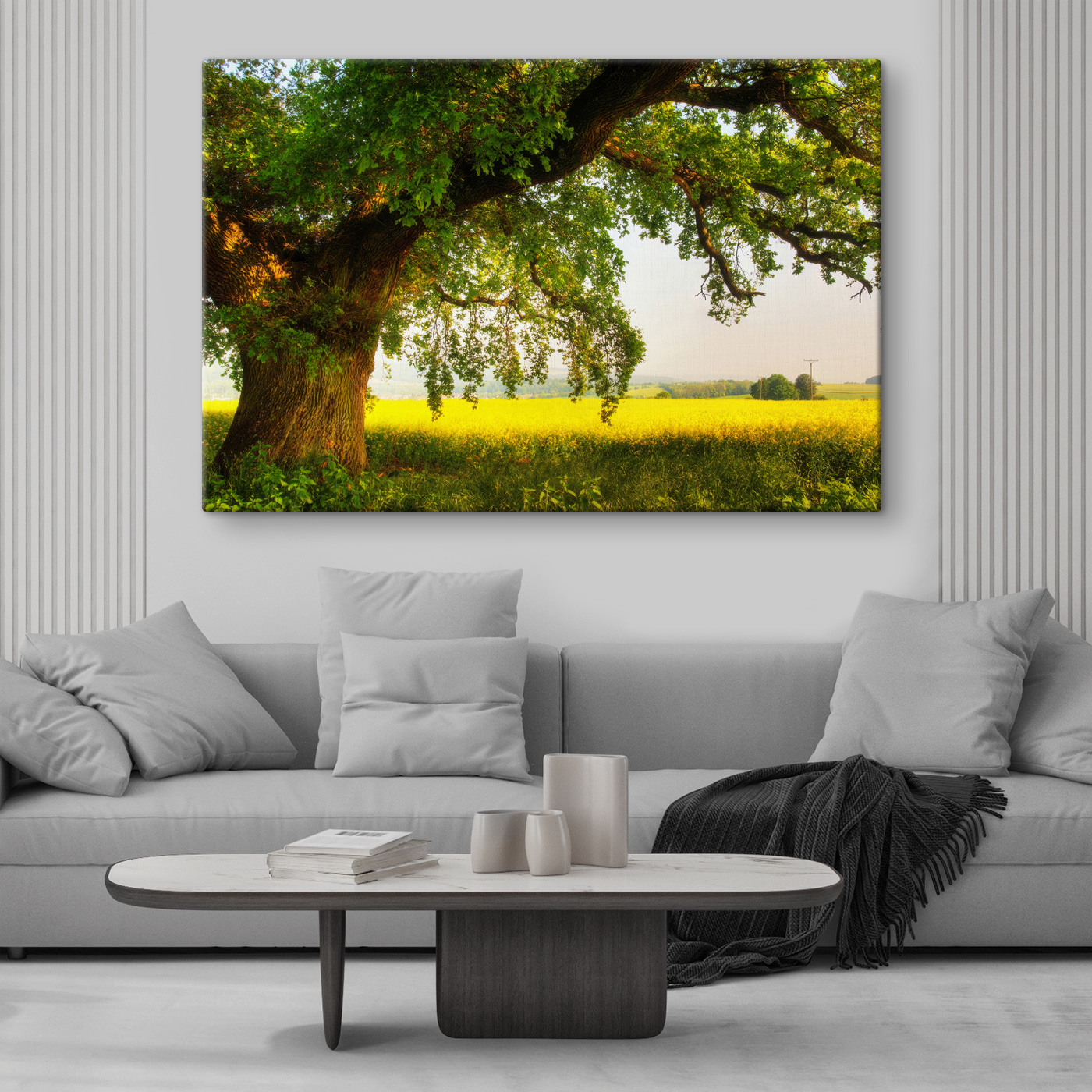Aduceți frumusețea senină a naturii în interior cu această imprimare uimitoare pe pânză care prezintă un copac maiestuos care își aruncă umbra peste un câmp însorit. Imaginați-vă o după-amiază leneșă petrecută sub acest coronament întins, briza blândă purtând parfumul dulce al florilor înflorite. Perfectă pentru a înveseli orice cameră, această operă de artă vă invită să visați cu ochii deschiși la picnicuri și evadări liniștite. Este ca și cum ai avea o felie de aer liber chiar pe perete, făcând fiecare zi un pic mai liniștită. Cine nu și-ar dori să se relaxeze într-un spațiu atât de frumos? Adaugă un strop de farmec inspirat din natură și lasă-ți pereții să respire!