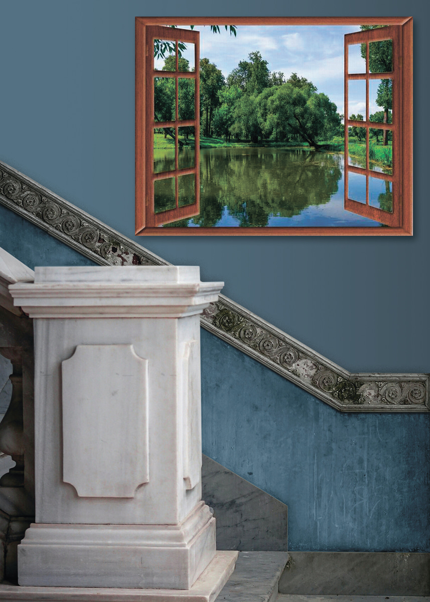 Imaginați-vă acest lucru: indiferent unde locuiți, puteți avea un iaz frumos și liniștit chiar în fața ferestrei dvs. Această imprimare pe pânză surprinde perfect sentimentul de liniște al unei zile calme și însorite lângă apă. Cu verdeață luxuriantă și reflexii blânde în iaz, este ca o îmbrățișare mare și caldă din partea naturii – perfectă pentru camera de zi, dormitor sau birou. Aproape că veți auzi ciripitul păsărilor și veți simți briza blândă. Gândiți-vă la asta ca la o mini-vacanță instantanee, de fiecare dată când vă uitați la perete. Fie că sunteți o persoană pasionată de aer liber sau pur și simplu iubiți o priveliște frumoasă, “View of a Pond Through a Window” aduce o atmosferă proaspătă și naturală în orice spațiu. În plus, este mult mai ușor decât să construiești un iaz în curtea ta din spate!