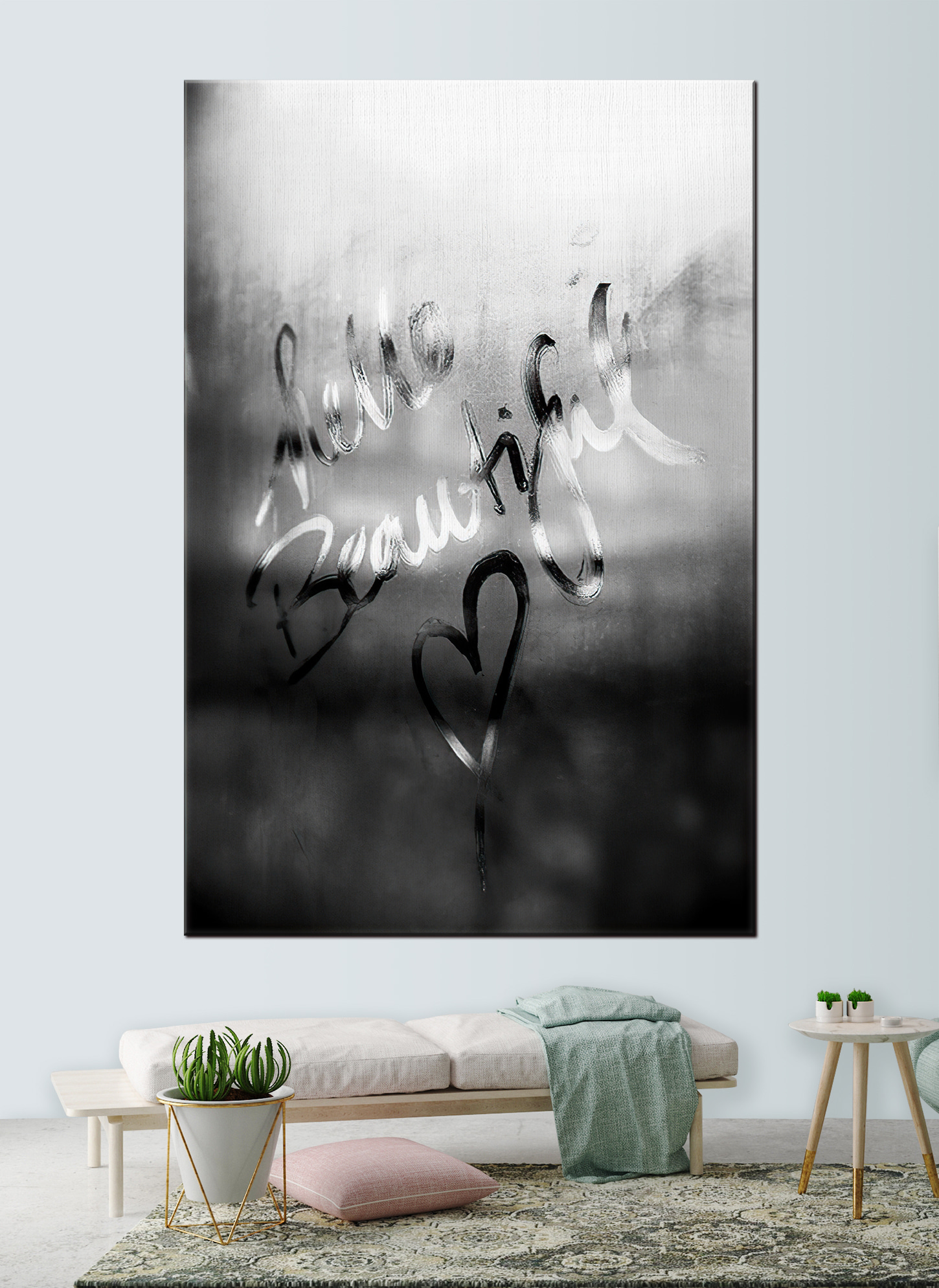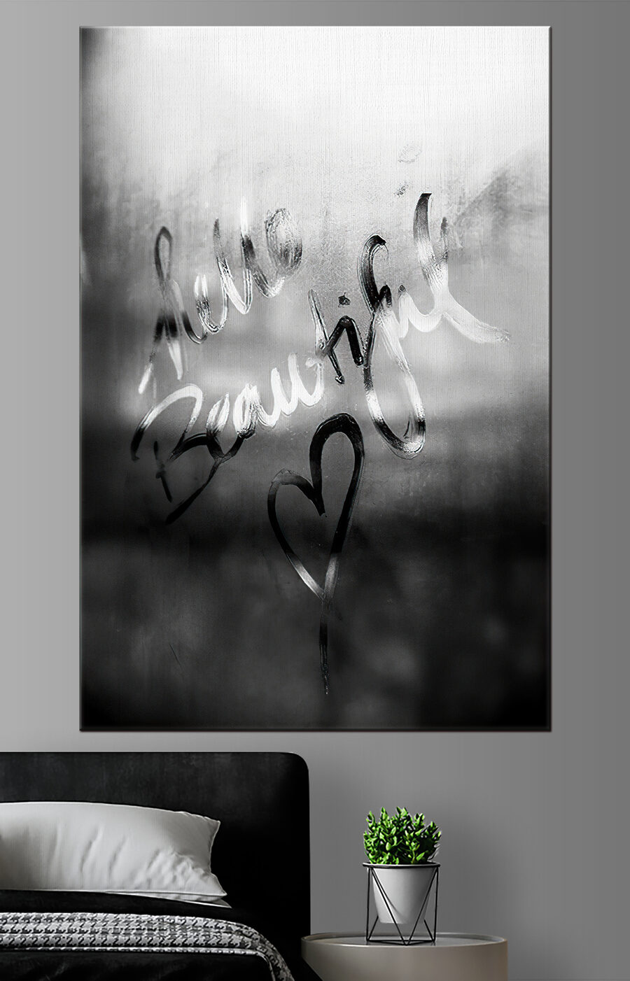 Imaginați-vă că intrați într-o cameră și BAM! O pânză uimitoare, alb-negru, atârnă pe perete. Chiar în fața ta, te întâmpină cu un vesel “Bună, frumoaso” mâzgălit în ceață pe o fereastră aburindă – completat cu o mâzgălitură sinceră. Este mai mult decât un decor – este o stare de spirit. Șoptește vibrații confortabile, de zile ploioase și cacao fierbinte. Imaginați-vă că vă uitați la asta după o zi lungă – zâmbet instant, nu? Este acel farmec fără efort. Perfect pentru dormitor, camera de zi sau chiar acel colțișor în care vă relaxați. Această piesă spune multe fără să scoată un cuvânt. Și monocromia? Atemporal. Este ca o îmbrățișare caldă în formă de artă. Pur și simplu nu poți da greș cu asta!