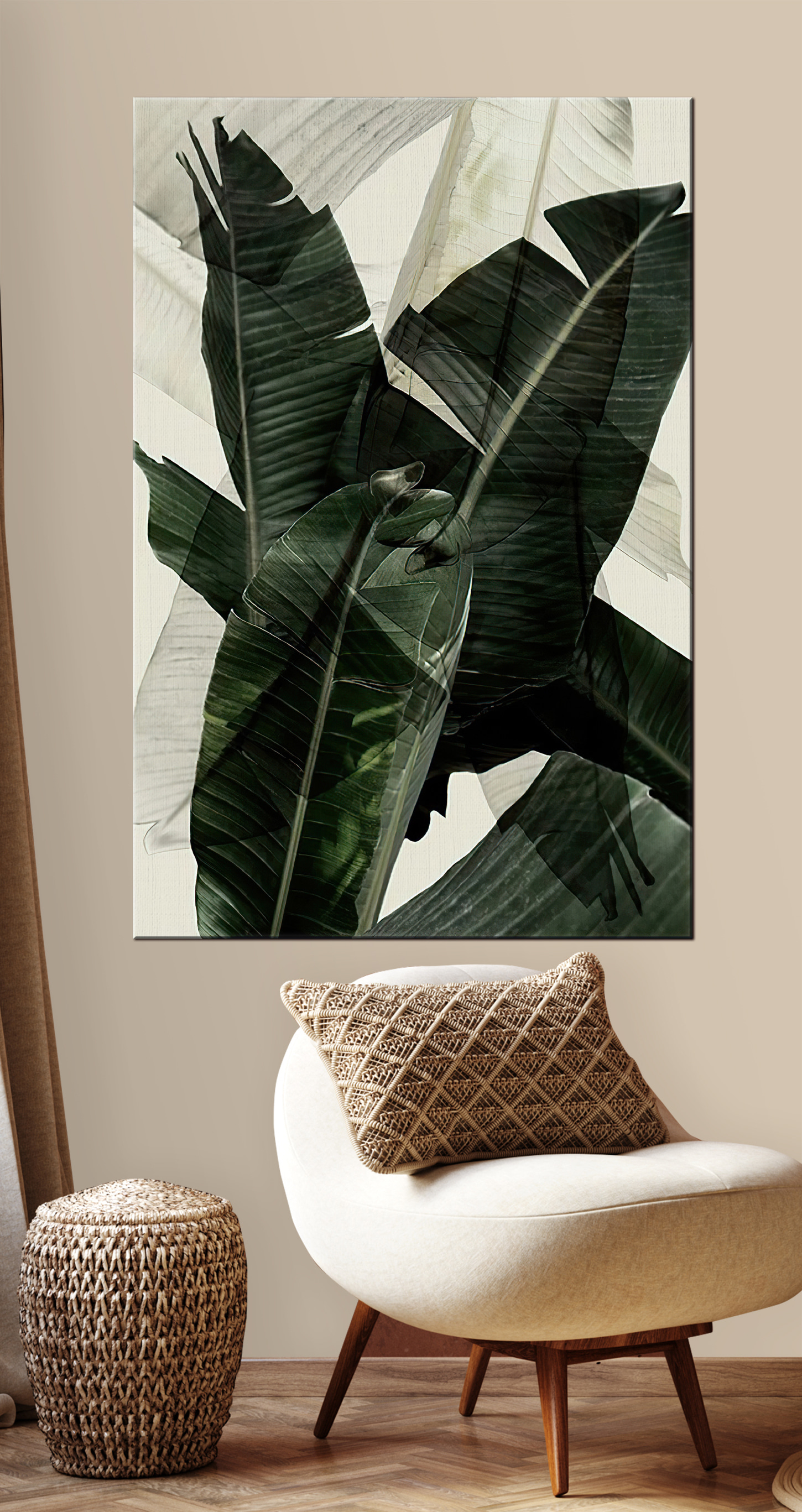 Imaginați-vă că aveți o atingere de junglă luxuriantă chiar în camera dvs. de zi. Această pânză superbă, intitulată “Straturi abstracte de frunze verzi”, face exact asta. Este ca și cum Mama Natură însăși a decis să stea pe peretele tău. Straturile de frunze, cu verdele lor intens și umbrele lor subtile, creează o atmosferă care este atât liniștitoare, cât și intrigantă. Perfect pentru iubitorii de natură sau pentru oricine dorește un strop de verdeață fără a avea nevoie de întreținerea plantelor. Imaginați-vă sorbind cafea, poate chiar un smoothie tropical, absorbind vibrațiile pașnice pe care această piesă le aduce în spațiul dvs. Este îmbrățișarea naturii, dar în formă de artă.