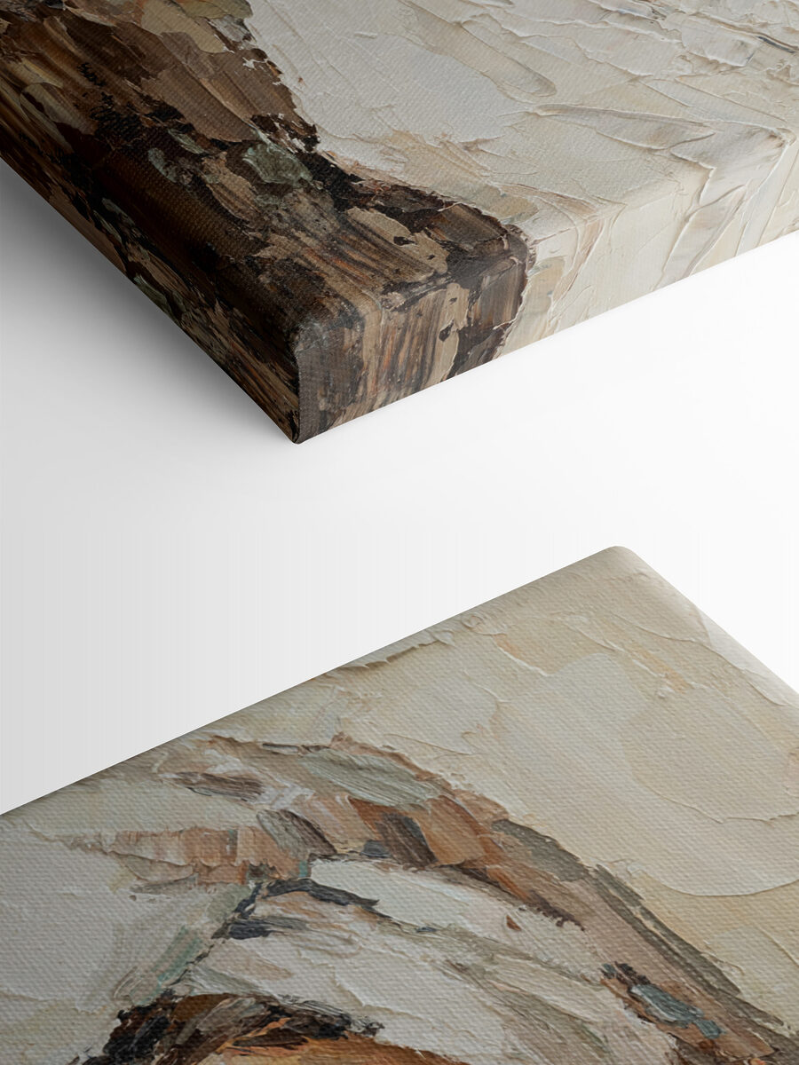 Imaginați-vă acest lucru: un colț confortabil în casa dvs., poate că este bucătăria sau acel loc lângă fereastră. Acum, imaginați-vă că agățați acest print pe pânză care înfățișează o femeie savurându-și ceașca de bucurie. Cu un prosop pe cap și ochelari de soare care strigă “M-am trezit așa”, ea are acel aer șic fără efort. Culorile calde joacă frumos împreună, evocând un sentiment de calm și invitându-vă să luați o pauză. Perfectă pentru un colț de cafea sau pentru acel spațiu care are nevoie de o notă de eleganță și distracție, această piesă vorbește despre acele momente de liniște pe care le prețuim cu toții. Fie că este vorba de cafea sau ceai, această lucrare de artă încurajează o mică pauză, fiind un companion minunat în viața de zi cu zi.