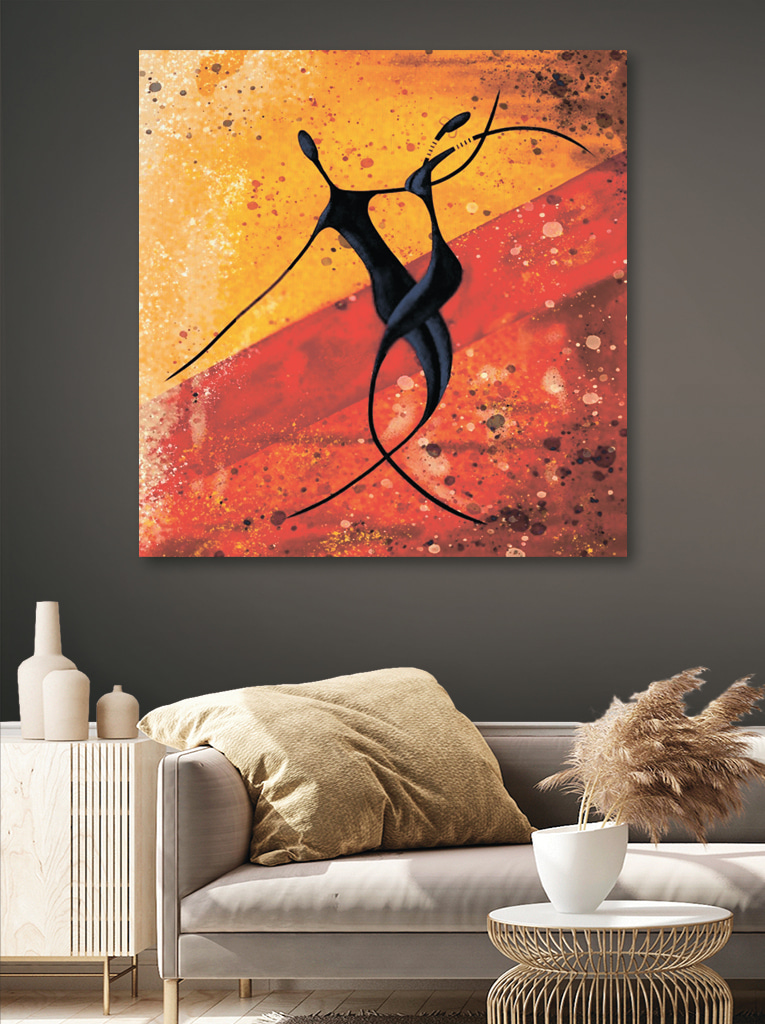 V-ați dorit vreodată să atârnați un pic de joie de vivre pe perete? Această imprimare pe pânză, intitulată “Pictură cu un cuplu de oameni care dansează”, ar putea fi doar pop-ul vesel de culoare de care spațiul dvs. are nevoie. Cu stilul său abstract, pictura surprinde esența a doi oameni care se învârt într-un dans elegant și jucăuș în același timp. Nuanțele calde – gândiți-vă la portocaliu aprins și roșu intens – seamănă cu un apus de soare în care v-ați putea pierde. Imaginați-vă acest tablou agățat în sufragerie sau pe hol, stârnind conversații și poate chiar inspirând un dans improvizat. Aveți un perete gol care necesită un strop de personalitate? Nu căutați mai departe. Este ca și cum ai avea o petrecere pe perete, fără curățenie. Doar energie pură, vibrantă, înghețată în timp.