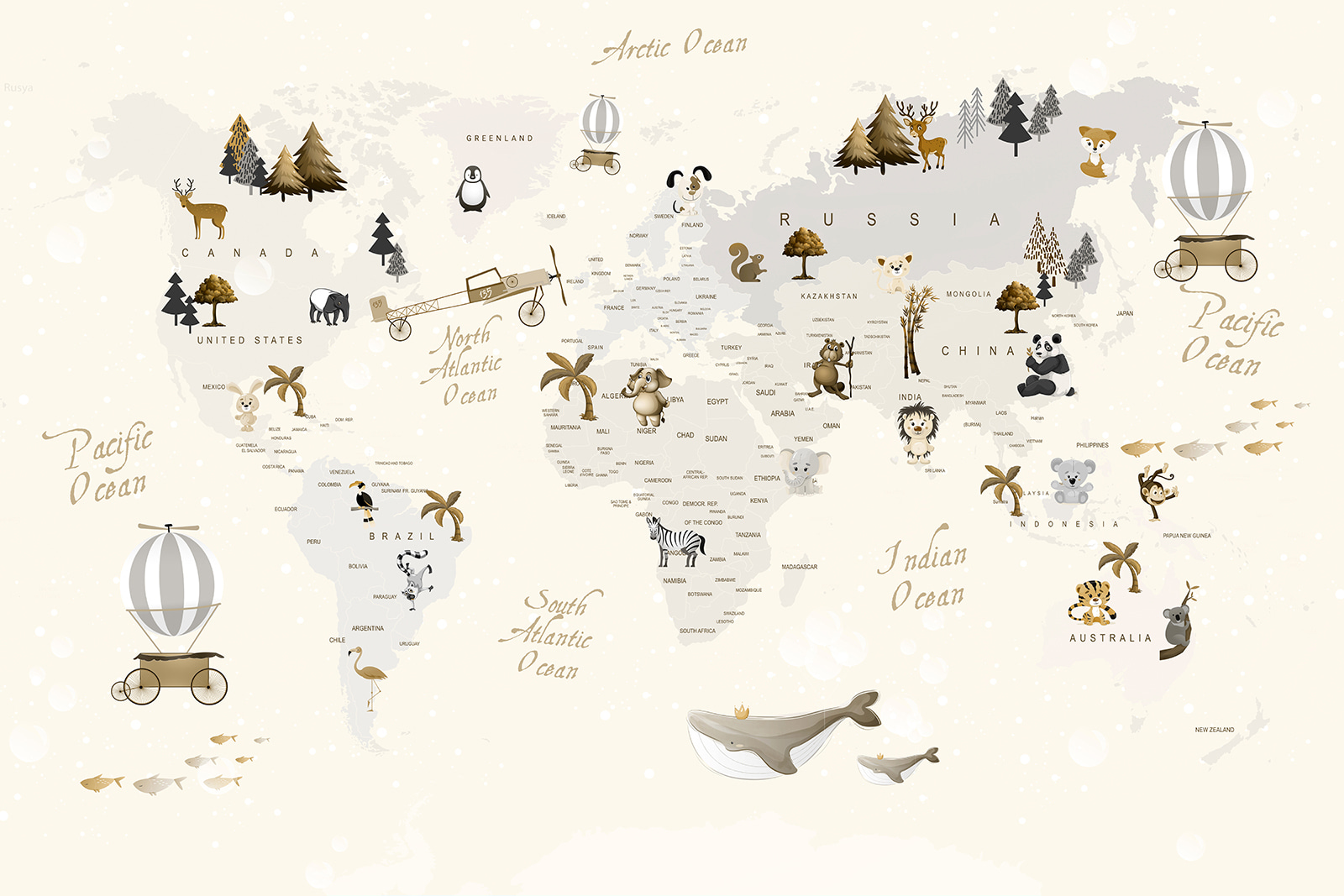 Totuși, nu este doar pentru copii. Acest imprimeu excentric este o alegere de vis pentru oricine adoră să își îmbine decorul cu ceva unic. Transformă un perete simplu într-o aventură globală, fiecare animăluț invitându-vă să explorați! În plus, are o paletă minunată, atenuată, care completează aproape orice schemă de culori.