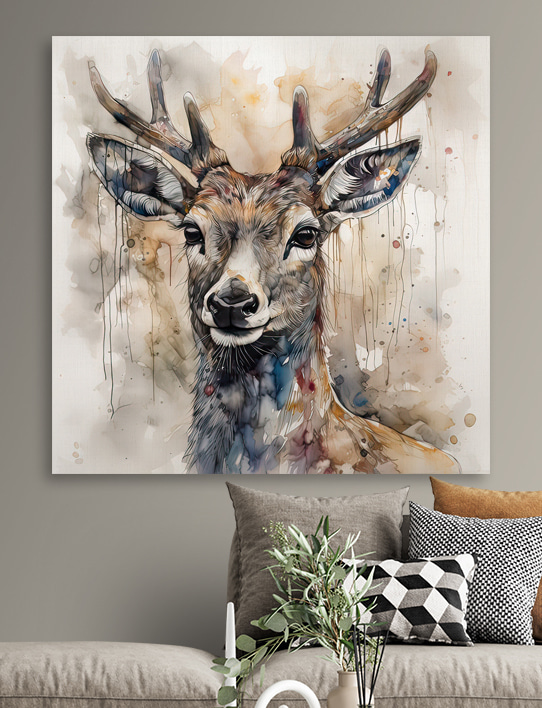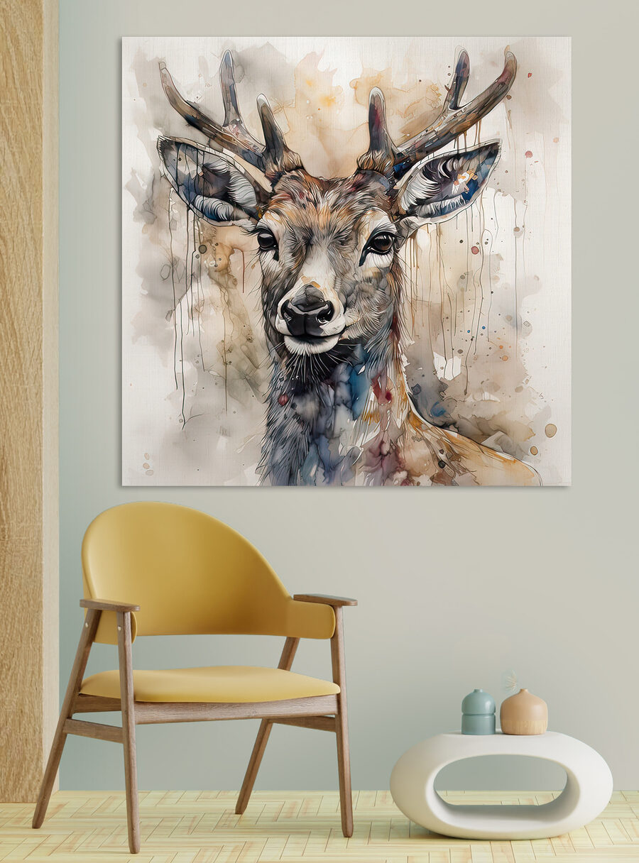 Transformați spațiul cu acest portret fermecător de cerb în acuarelă! Imaginați-vă: un cerb elegant, cu coarne mândre, privește blând de pe perete, aducând natura în interior fără grija animalelor sălbatice care se plimbă înăuntru. Această piesă de artă spune multe – este un starter de conversație și un memento blând al farmecului naturii sălbatice. Perfectă pentru camerele copiilor sau pentru un colț confortabil, aceasta adaugă un strop de căldură și creativitate. Imaginați-vă prietenii admirând-o la cafea sau momentele liniștite petrecute doar cufundându-se în frumusețe. O mică piesă de artă care aduce o lume de minuni chiar în casa ta.