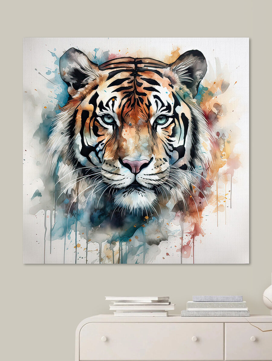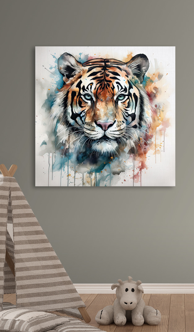 V-ați gândit vreodată să adăugați un strop de sălbăticie în casa dvs.? Acest “Tablou tipărit pe pânză al unui tigru” este exact ceea ce trebuie. Perfect pentru camerele copiilor, pentru iubitorii de animale sau pentru oricine se bucură de un pic din drama naturii pe pereții lor. Este ca și cum ai aduce o bucată din junglă în casă – fără țânțari. Stilul acuarelă adaugă o vibrație artistică, de vis; aproape că puteți simți măreția și grația tigrului. Imaginați-vă conversațiile pe care le va stârni atunci când vor veni prietenii. Nu este doar decor; este o declarație – îndrăzneață, frumoasă și un pic îndrăzneață. Amestecul perfect de feroce și fabulos!