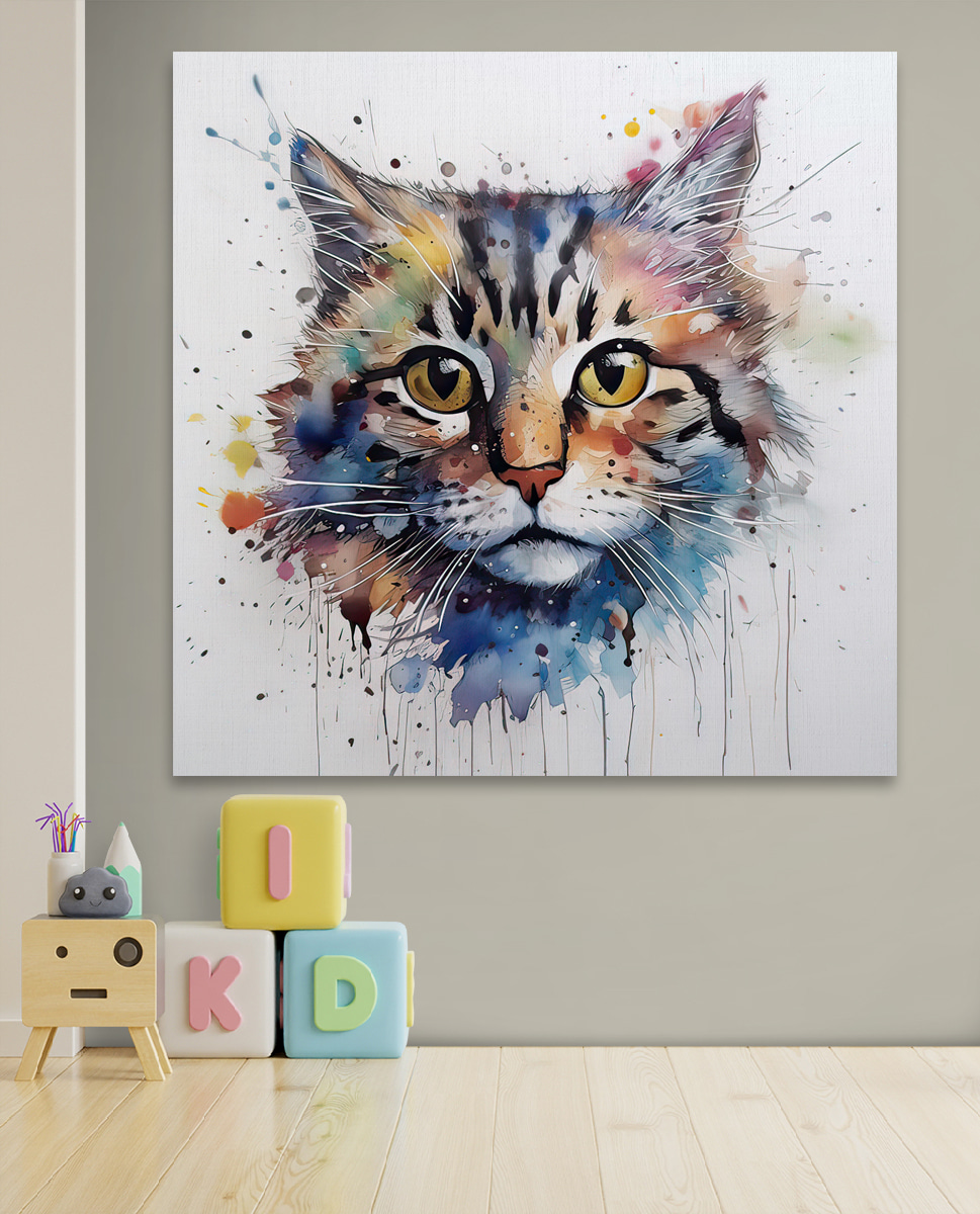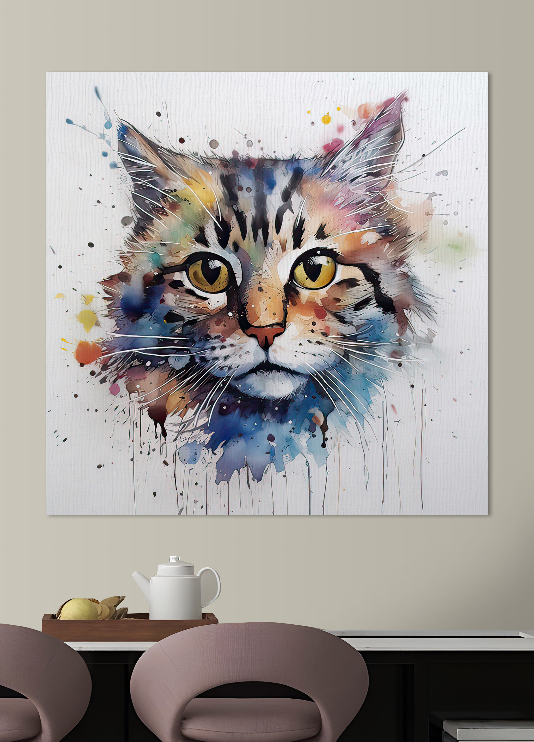 Înveseliți orice spațiu cu această uimitoare pictură pe pânză a unei pisici. Este ca și cum propria dvs. blăniță se uită la dvs., plină de personalitate și farmec. Stropițele jucăușe de culoare invită la zâmbete și stârnesc conversații – perfect pentru un colț confortabil sau o cameră de zi plină de viață. Imaginați-vă că vă relaxați pe canapea, sorbindu-vă băutura preferată, în timp ce această felină blănoasă captivează camera. Nu este doar artă; este o doză zilnică de bucurie. Adăugați o notă de fantezie și lăsați această pisică să-și facă loc în inima și casa dvs. – pentru că cine nu și-ar dori un companion vibrant și artistic?
