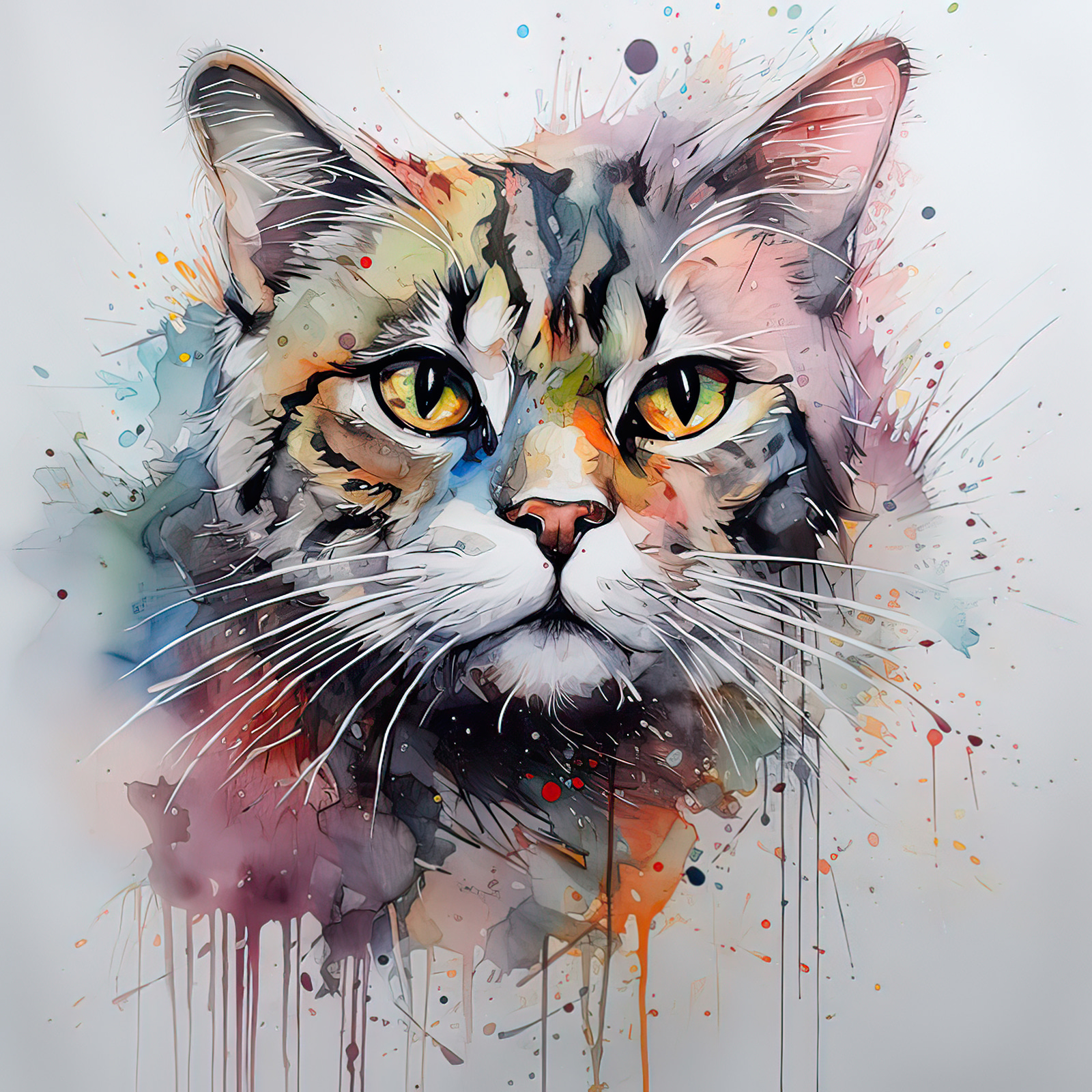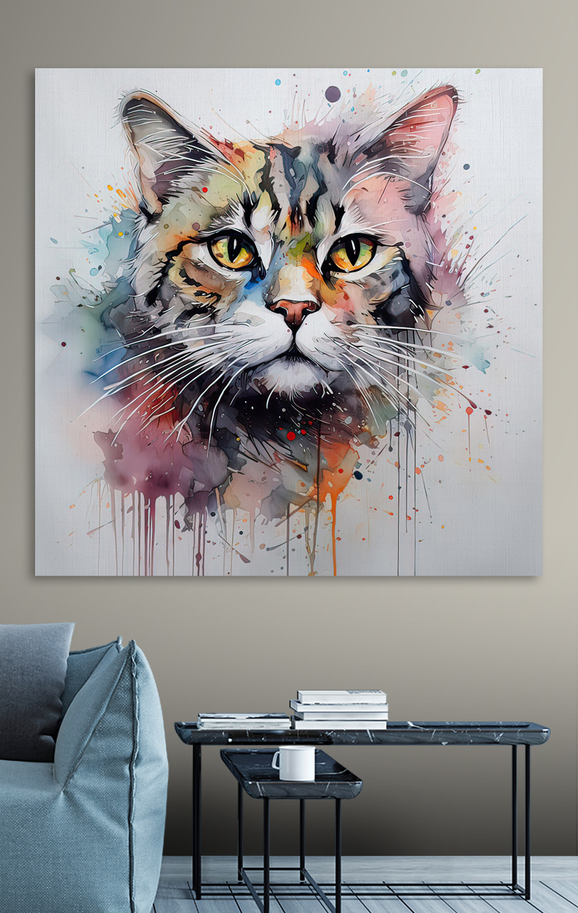 Această pânză cu pisică plină de viață este exact stropul de fantezie și culoare după care tânjește fiecare cameră. Imaginați-vă această felină jucăușă care veghează grațios asupra spațiului dvs., dând o notă de mister și farmec. Stilul său vibrant de acuarelă pare să iasă în evidență de pe perete – aproape ca și cum ar da târcoale prin imaginația ta. S-ar putea să te trezești privind în ochii aceia plini de suflet, întrebându-te ce se întâmplă în mintea acelei feline. Perfectă pentru iubitorii de animale și pentru pasionații de artă deopotrivă, este o sursă perfectă de conversație.