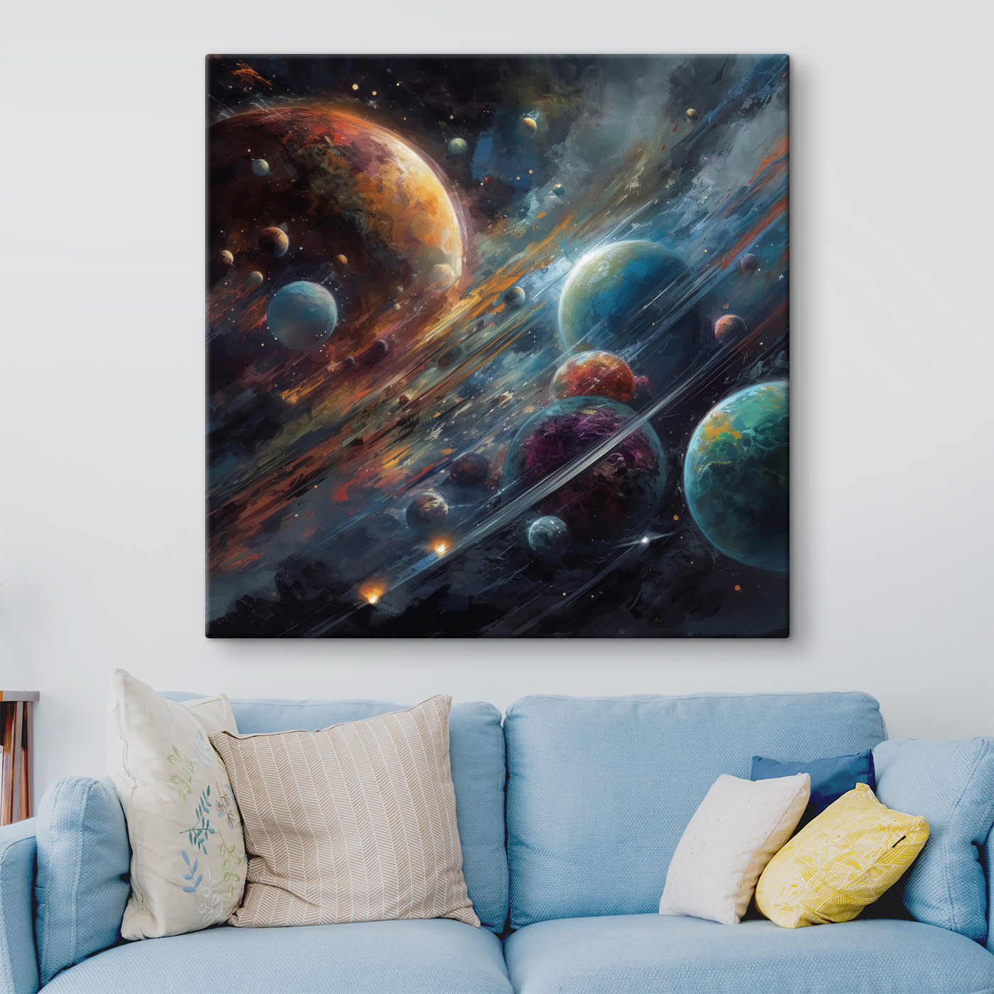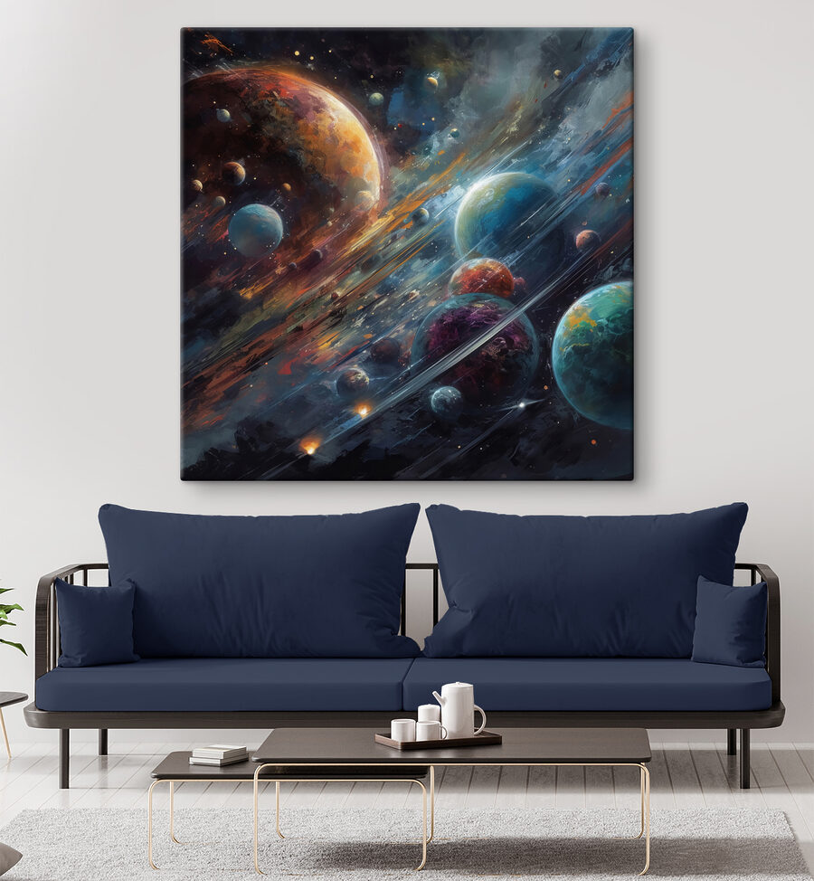 Împrospătează-ți spațiul, la propriu. Este mai mult decât o imprimare – este o călătorie spre stele. Fie că meditați, visați cu ochii deschiși sau pur și simplu aveți nevoie de un pic de relaxare, această piesă vă acoperă. Chiar și pisica ta s-ar putea gândi de două ori înainte de a se întinde cu planetele la vedere.