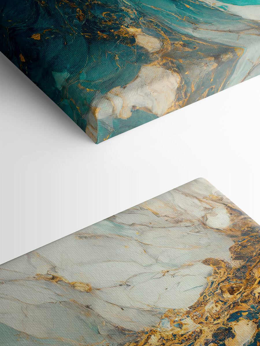“Printuri pe pânză Turcoise Swirls with Amber Veins” este ca și cum ai avea o bucată din sufletul oceanului agățat pe perete. Imaginați-vă o mare furtunoasă înghețată în timp, cu valuri turcoaz strălucitoare care se învârt și vene de chihlimbar care traversează – este o atingere a haosului naturii capturată frumos. Perfect pentru un loft sau pentru a adăuga un vibe artistic oricărei camere. Această piesă are această energie liniștitoare, dar intrigantă; solicită atenția în liniște. Oaspeții s-ar putea uita de două ori la ea, meditând la profunzimea ei. Va stârni conversații, vise cu ochii deschiși, poate chiar va inspira o poezie sau două!