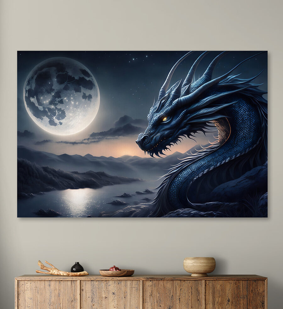 Transformați orice cameră într-o zonă de aventură capricioasă cu imprimarea pe pânză care prezintă un dragon albastru uimitor, cu coarne maiestuoase și un fundal captivant de lună. Imaginați-vă acest lucru: copilul dvs. intră în spațiul său, ochii luminându-se la vederea acestei creaturi feroce, dar prietenoase. Nu este doar artă; este scânteia imaginației, perfectă pentru a visa cu ochii deschiși la misiuni și ținuturi fermecate. Această piesă vibrantă invită la gânduri de nopți magice și povești palpitante. Este un starter de conversație și, să fim sinceri, cine nu ar vrea ca un dragon să stea cu ochii pe lucruri? Perfect pentru micii exploratori înrăiți!