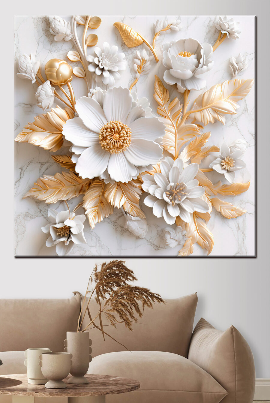Transformați orice spațiu cu această imprimare uimitoare pe pânză! “Tablouri Ornate Floral Relief with Elegant Tones” aduce o atingere a naturii în interior, prezentând un aranjament frumos de flori. Imaginați-vă că intrați într-o cameră și sunteți întâmpinați de aceste flori minunate – este ca și cum ați avea o grădină chiar pe perete. Fiecare petală și frunză este plină de caracter, invitând pe toată lumea să se uite mai atent. Este o piesă fără efort, care poate lumina un colț confortabil sau poate înălța o zonă de living formală. Perfectă pentru cei care apreciază arta care se simte vie, împrospătând starea de spirit fără a spune un cuvânt. O mică magie florală pentru spațiile de zi cu zi!