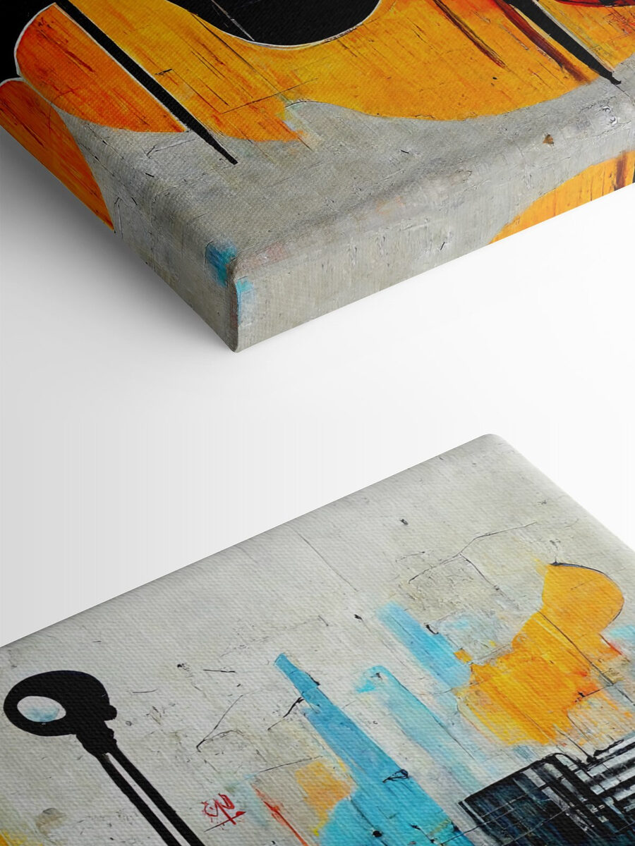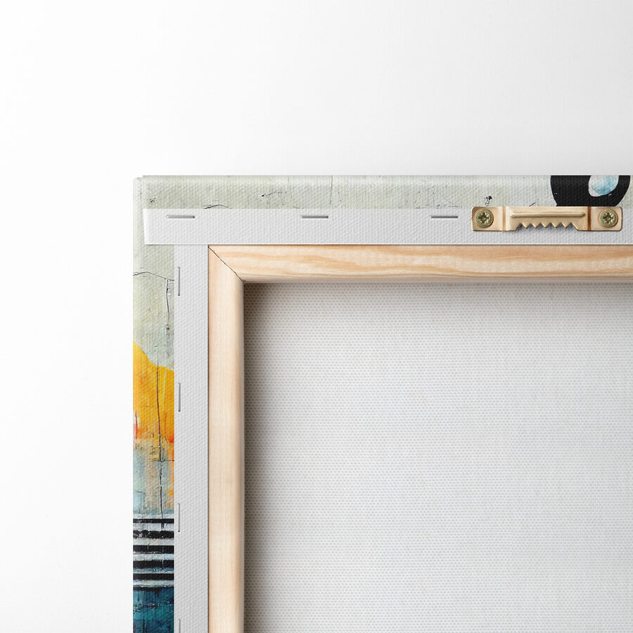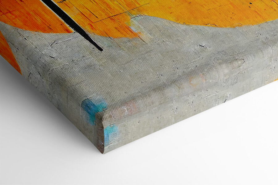 Cercul negru, cu gaura sa misterioasă, te atrage înăuntru. Ce se întâmplă acolo? Cine știe, dar este distractiv să te gândești la asta. Portocaliul și albastrul strălucitor dansează în jurul lui, ca o formație de jazz care are o sesiune de jam session – totul este sincronizat, dar minunat de imprevizibil. Oaspeții vor fi curioși, poate chiar un pic hipnotizați. Perfect pentru orice spațiu care are nevoie de un pic de jazz fără trompete. Dacă arta ar putea face cu ochiul, acest print pe pânză ar face-o.