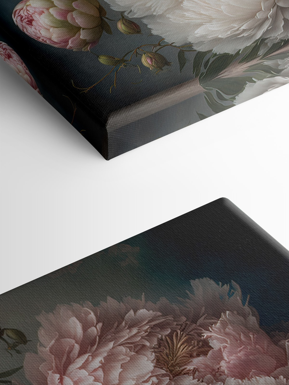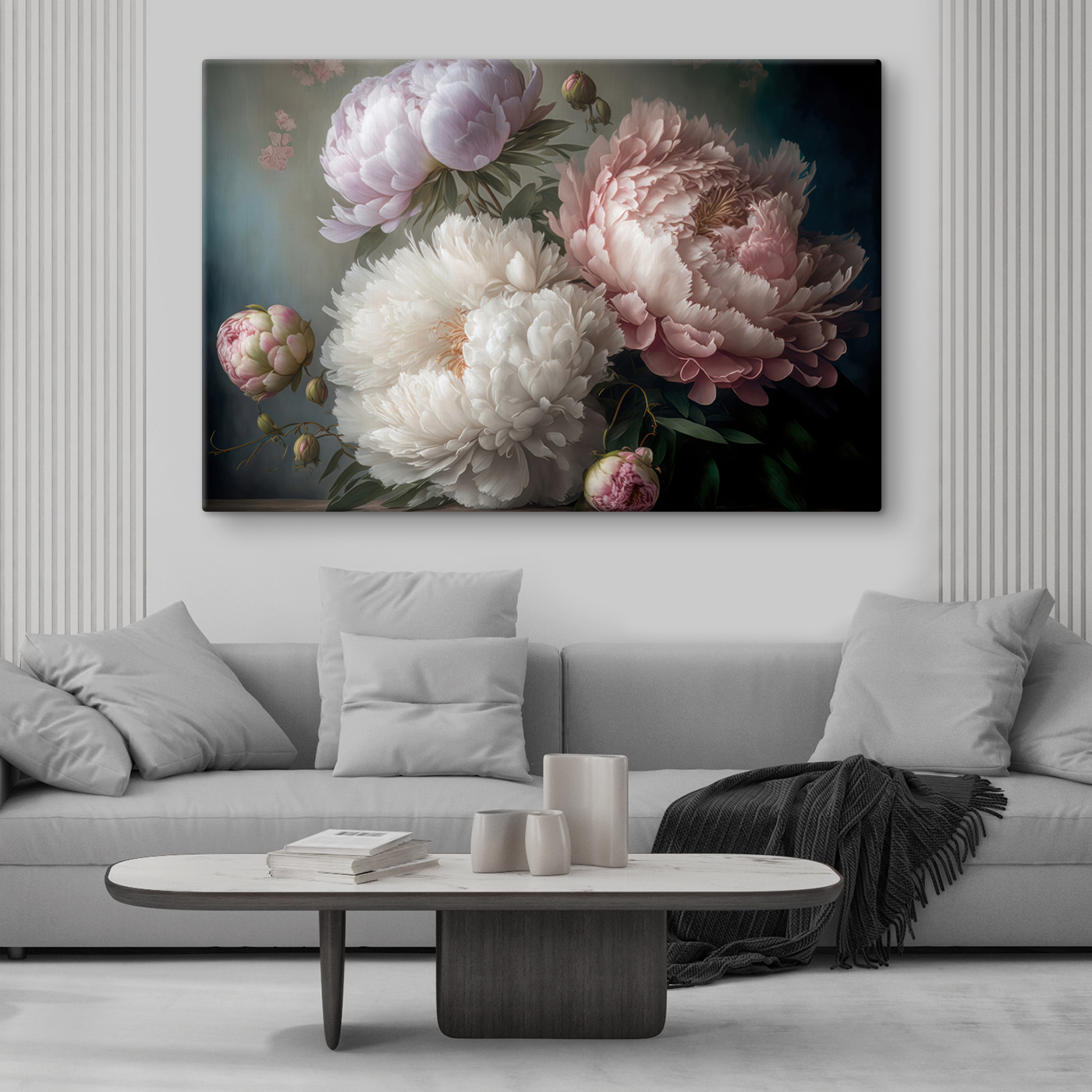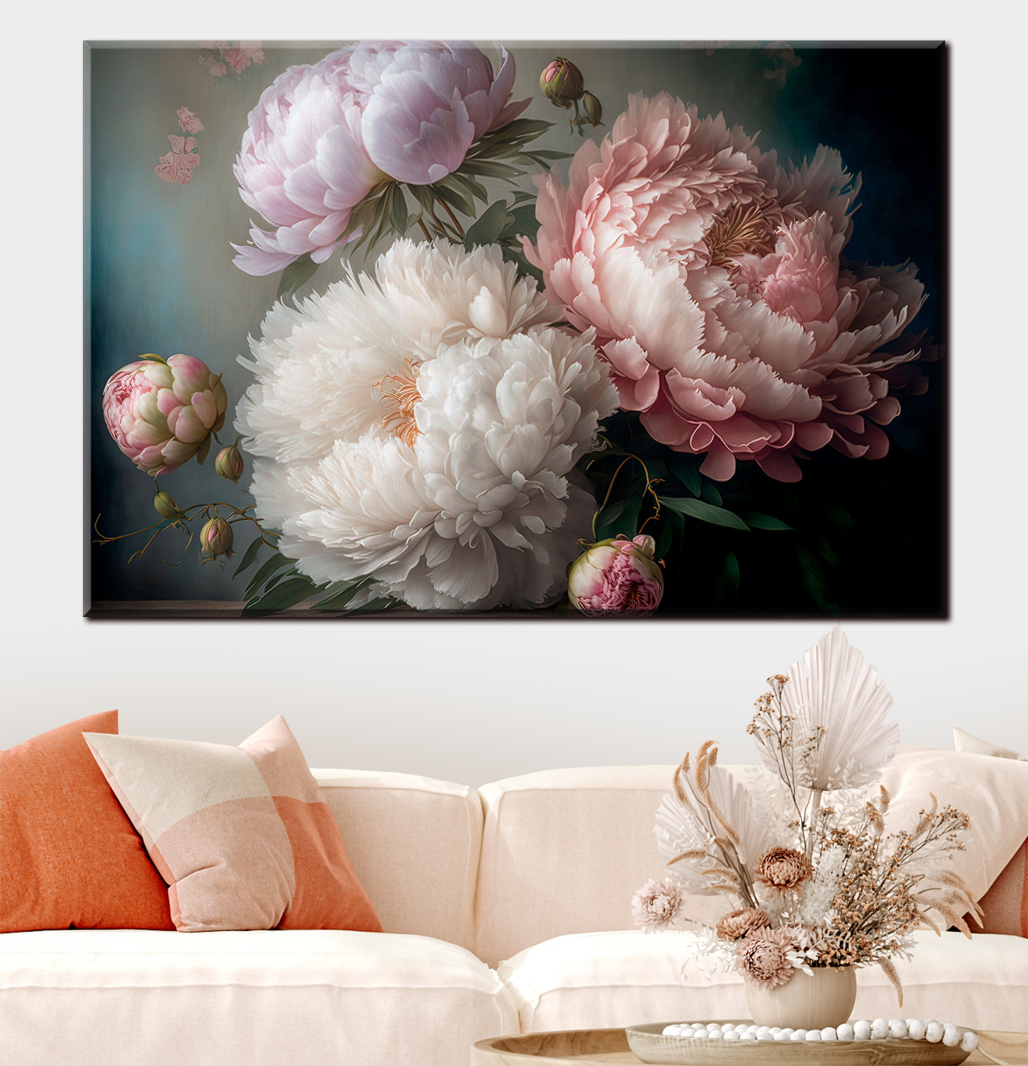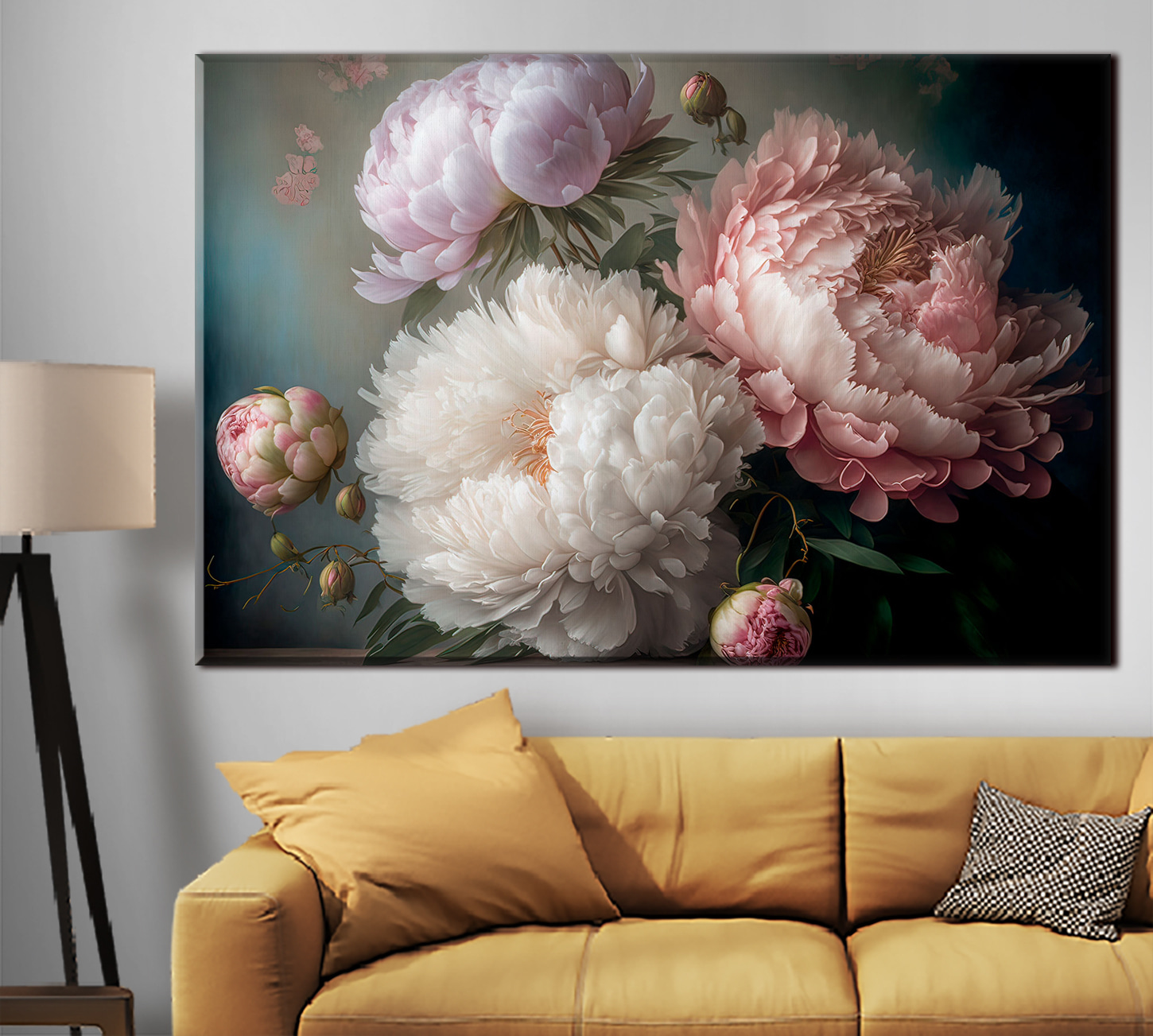Transformați orice spațiu într-un refugiu senin cu această imprimare uimitoare pe pânză cu bujori eleganți în floare. Aceste flori, precum acel prieten care aduce întotdeauna soare, insuflă căldură și culoare, creând o atmosferă primitoare. Imaginați-vă sorbind ceai în timp ce această operă de artă frumoasă vă împodobește ușor peretele, încurajând visele cu ochii deschiși și șoaptele de primăvară. Fiecare petală pare să spună o poveste, trăgând de coardele inimii. Perfectă pentru a înveseli o cameră de zi sau pentru a adăuga o notă de eleganță unui dormitor, această piesă vă va face pe dvs. și pe oaspeții dvs. să simțiți toate vibrațiile bune.