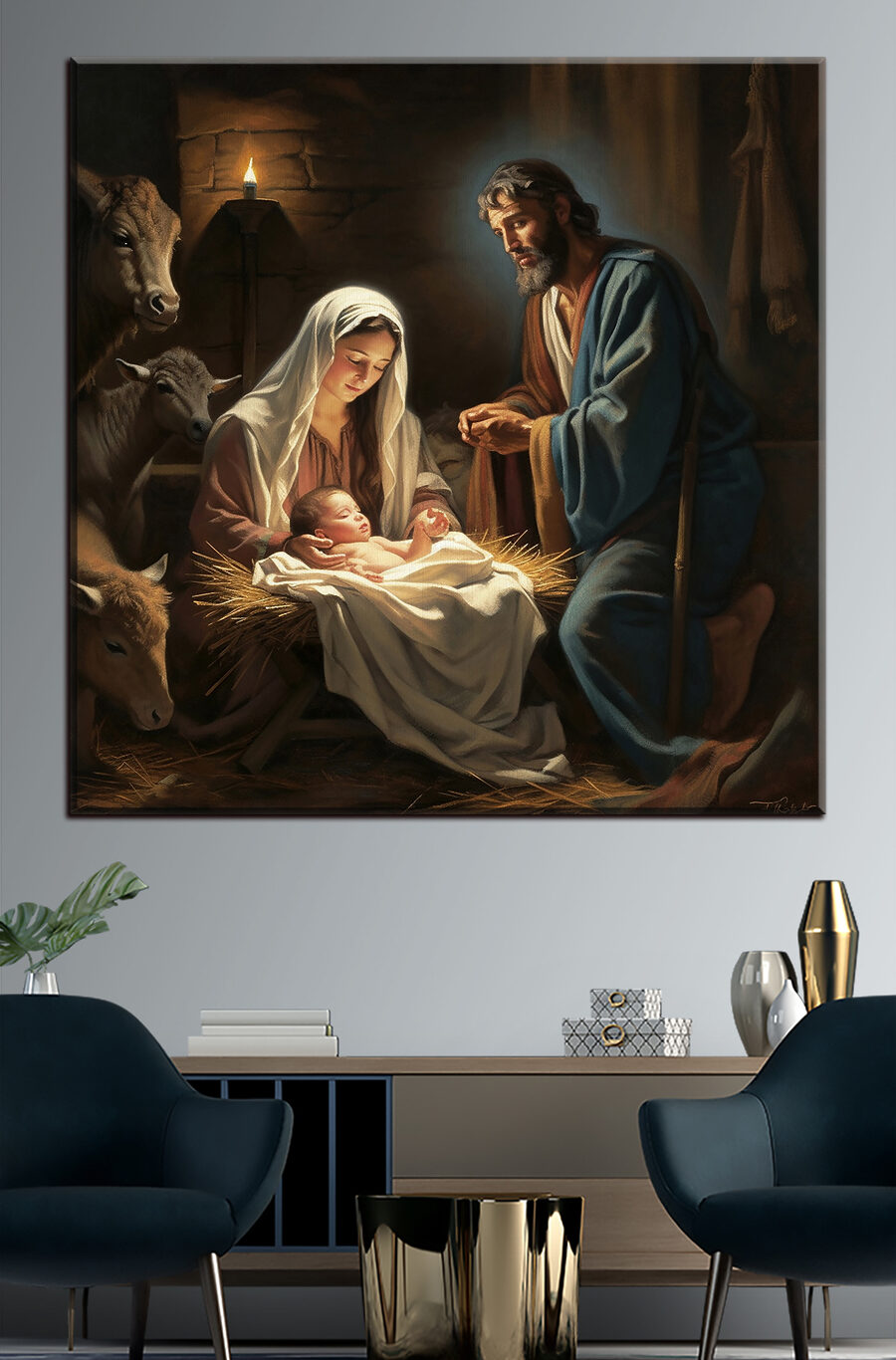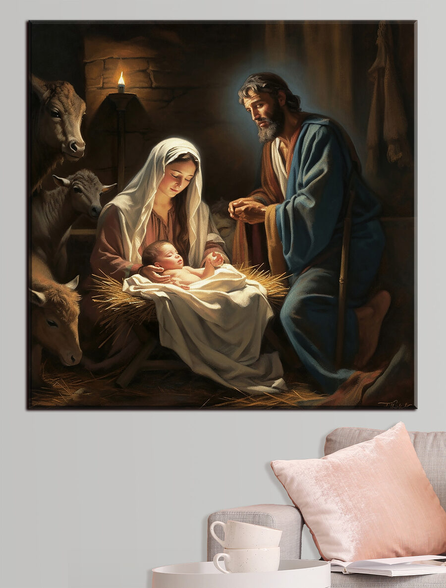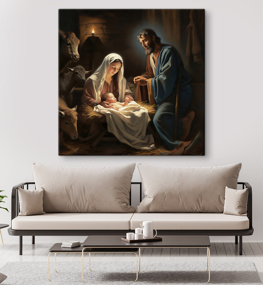 Imaginează-ți că ai această imprimare uimitoare pe pânză în casa ta – e ca și cum aproape ai putea auzi cântecele de leagăn moi și blânde și simți căldura acelei lumânări incandescente. “Woman holding a baby” nu este doar o operă de artă; este o poartă spre un moment de pace și tandrețe. Perfect pentru oricine apreciază imaginile religioase sau pur și simplu iubește frumusețea senină a maternității. Imaginați-vă-o deasupra șemineului sau în colțul dvs. confortabil de lectură; va aduce un sentiment de calm și respect în cameră. În plus, este un bun început de conversație – cui nu i-ar plăcea să discute despre această scenă clasică, dar intimă? Fiecare lovitură de pensulă de pe această reproducere spune multe, surprinzând o scenă atemporală și emoționantă. Aduceți o bucată de seninătate divină în spațiul dvs. cu această capodoperă – cu siguranță va face inimile să se încălzească și ochii să zăbovească.