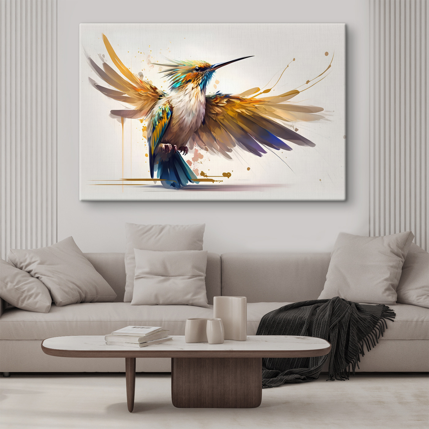 Imaginează-ți că intri în sufrageria ta și bam – apare o explozie de culoare și viață, chiar pe peretele tău. Această imprimare pe pânză a unei păsări cu aripile desfăcute este ca și cum ai avea o felie de tropice în casa ta. Aceste culori sunt atât de vibrante, aproape ca și cum ai avea curcubeul prins în pene. Și detaliile – aproape că poți simți fluturarea blândă doar uitându-te la ea. Este jucăuș și energic, dar are și ceva liniștitor. Alegerea perfectă pentru un colț confortabil în care vă sorbiți cafeaua, doar privind această frumusețe și visând la aventuri. Ideală pentru oricine iubește un pic de artă a naturii chiar în cuibul său.