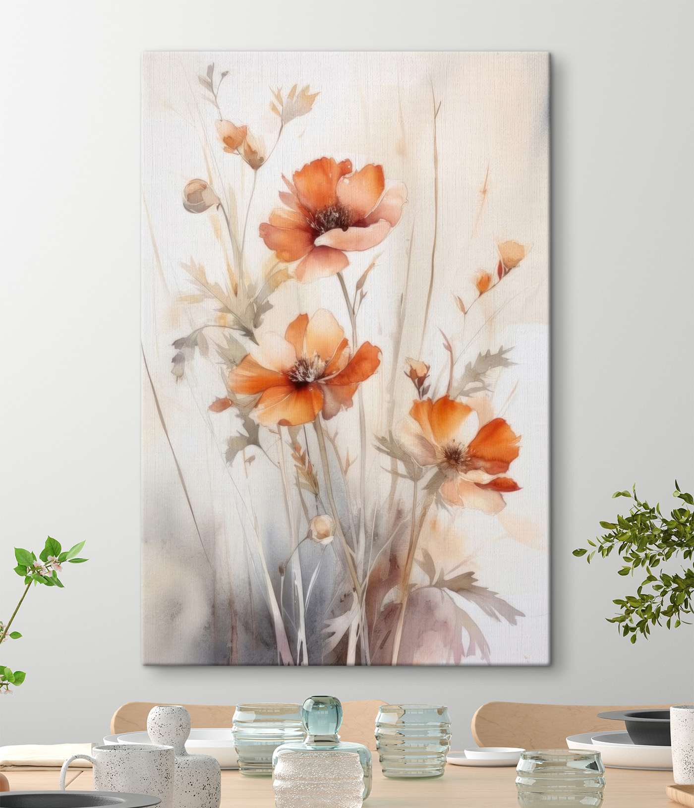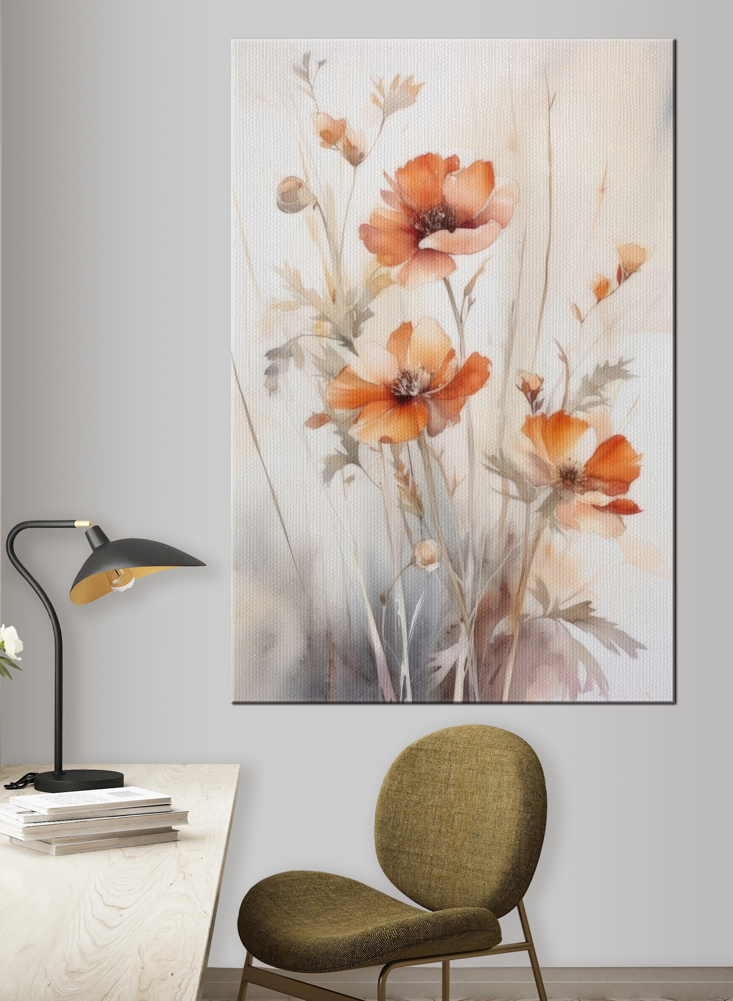 Transformați orice cameră cu această imprimare uimitoare pe pânză cu flori portocalii delicate în floare. Imaginați-vă că pășiți într-un spațiu în care nuanțele vibrante ale acestor flori pot stârni bucurie și căldură – ca o zi însorită surprinsă pe peretele dvs. Stilul moale de acuarelă adaugă o notă de liniște, făcându-l perfect pentru o cameră de zi sau un colț de lectură confortabil. Vizitatorii ar putea zăbovi puțin mai mult, admirând frumusețea și imaginându-și poveștile din spatele fiecărei petale. Este o frumoasă amintire a faptului că magia naturii poate prospera și în interior. Cine nu și-ar dori un pic din acest farmec în casa sa?