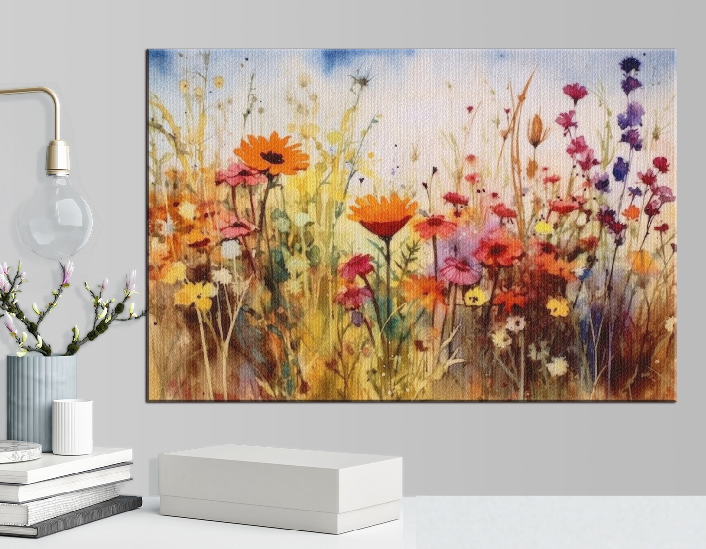 Imaginați-vă că pășiți direct într-un câmp de flori sălbatice de fiecare dată când intrați în camera dvs. Acest “Tablouri Vibrant Wildflowers in Watercolor Painting” face exact asta! Este ca o explozie de culori de primăvară pe tot parcursul anului. Tehnica acuarelei îi conferă o vibrație visătoare, aproape magică, ca și cum te-ai uita pe fereastră într-o pajiște însorită. Plasați-o în camera de zi sau în dormitor și observați cum luminează instantaneu spațiul. Culorile sunt atât de vii, încât aproape că poți mirosi florile și simți briza caldă. Perfect pentru oricine iubește natura, florile și un pic de fantezie în decorul său. În plus, se potrivește perfect temelor de artă pe pânză cu flori, artă pe pânză populară și artă pe pânză cu acuarele. Este acea bucățică de bucurie cu care ți-ar plăcea să te trezești în fiecare dimineață.