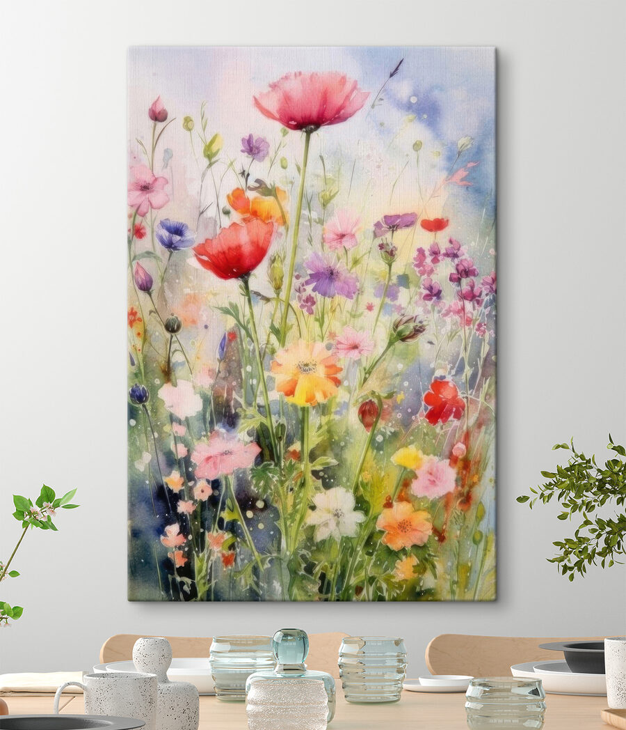 Înveselește-ți spațiul cu această uimitoare imprimare pe pânză “Wildflowers in Vibrant Watercolor Hues”. Este ca o gură de aer proaspăt pentru pereții tăi! Amestecul viu de culori – roz, purpuriu, galben – și acele petale delicate strigă primăvara, nu-i așa? Perfect pentru oricine visează la pajiști însorite, dar trebuie să se mulțumească cu smogul orașului. De fiecare dată când vă uitați la ea, s-ar putea să vă simțiți ca într-un câmp de flori sălbatice, cu o briză ușoară purtând parfumul dulce al florilor. Nu este doar artă; este o evadare. În plus, imaginați-vă conversațiile pe care le va stârni atunci când vor veni prietenii! O mică felie de rai floral, chiar pe peretele tău.