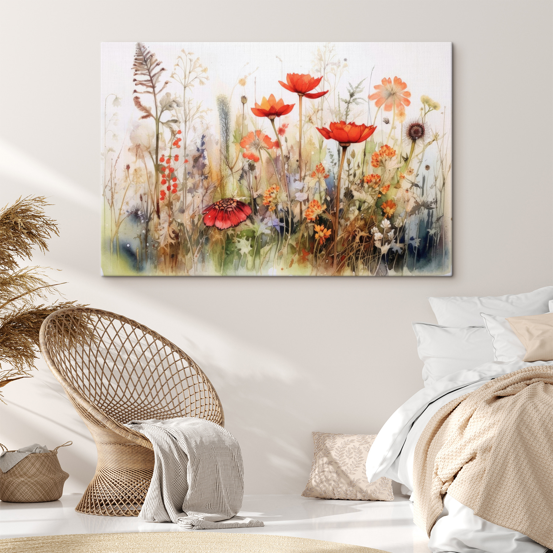 Aruncați o privire la această imprimare pe pânză, “Grădină vibrantă cu flori sălbatice în floare”. Este ca și cum ai păși într-o pajiște de vis chiar din camera ta de zi. Roșu aprins, portocaliu și un strop de verde fac să pară că florile se leagănă cu briza! Imaginați-vă că vă treziți în fiecare zi cu acest strop de culoare – este un stimulent instantaneu al dispoziției. Perfect pentru acel perete gol care a implorat pentru puțină dragoste. Iar stilul acuarelă? Pur și simplu luxuriant. Este o bucățică de natură, chiar în casa ta.✨