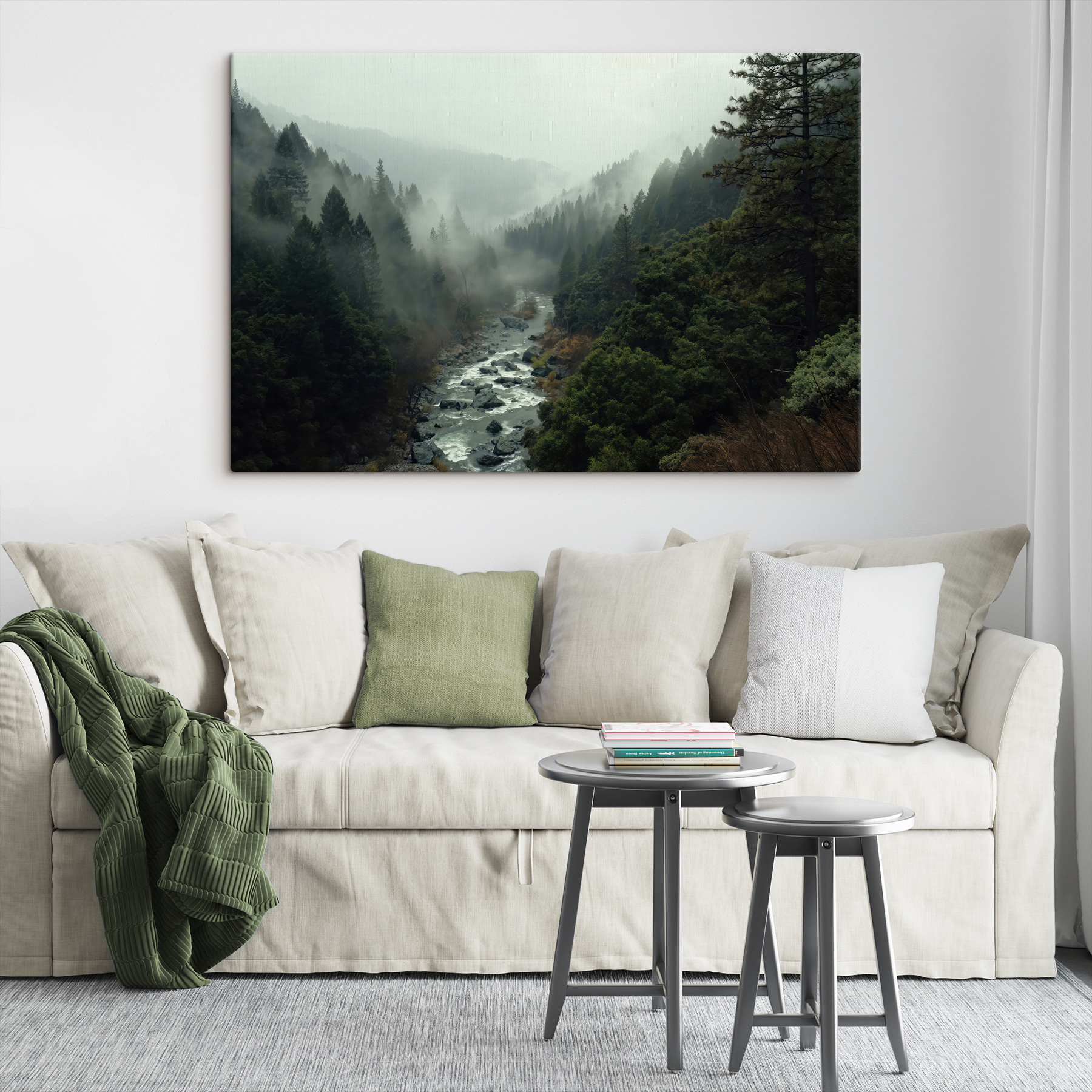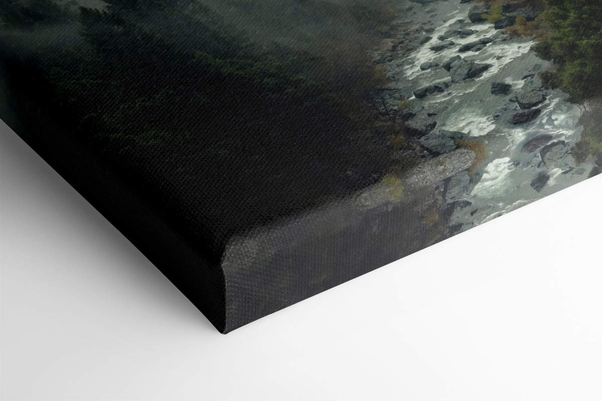 Nu-i așa că este uimitor? Imprimarea pe pânză “Râu curgând printr-o pădure” este exact ceea ce vă doriți atunci când aveți nevoie de o bucată de liniște în spațiul dumneavoastră. Imaginați-vă că vă odihniți ochii pe acest tablou în fiecare zi: un râu șerpuind printre copaci luxurianți și cețoși – este ca și cum ați fi dus într-o excursie senină, dar fără cizme noroioase!