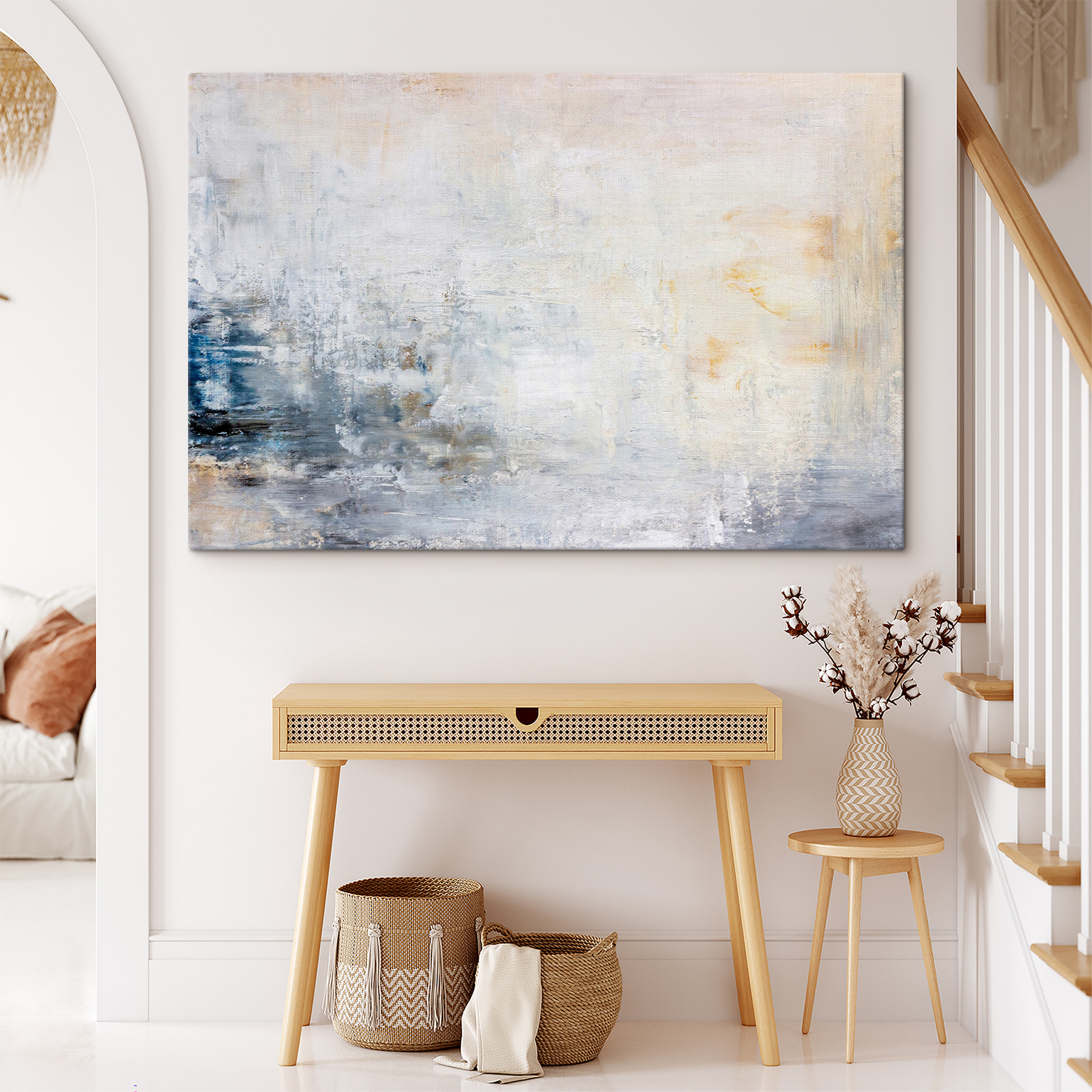 V-ați pierdut vreodată uitându-vă la valurile oceanului? Această pânză ar putea surprinde exact acel sentiment. “Blurry image of a body of water” este o lucrare care aduce un fel de calm visător în orice spațiu – este ca și cum te-ai uita la apele cețoase dimineața devreme. Imaginați-vă această piesă agățată deasupra canapelei, adăugând o șoaptă de liniște zilelor dvs. agitate. Subtilă, dar hipnotizantă, aceasta găsește o modalitate de a liniști și inspira în același timp. Perfectă pentru acea estetică de loft sau pentru a transforma un perete banal în ceva conversațional. Este arta care vorbește încet, dar lasă o impresie de durată.