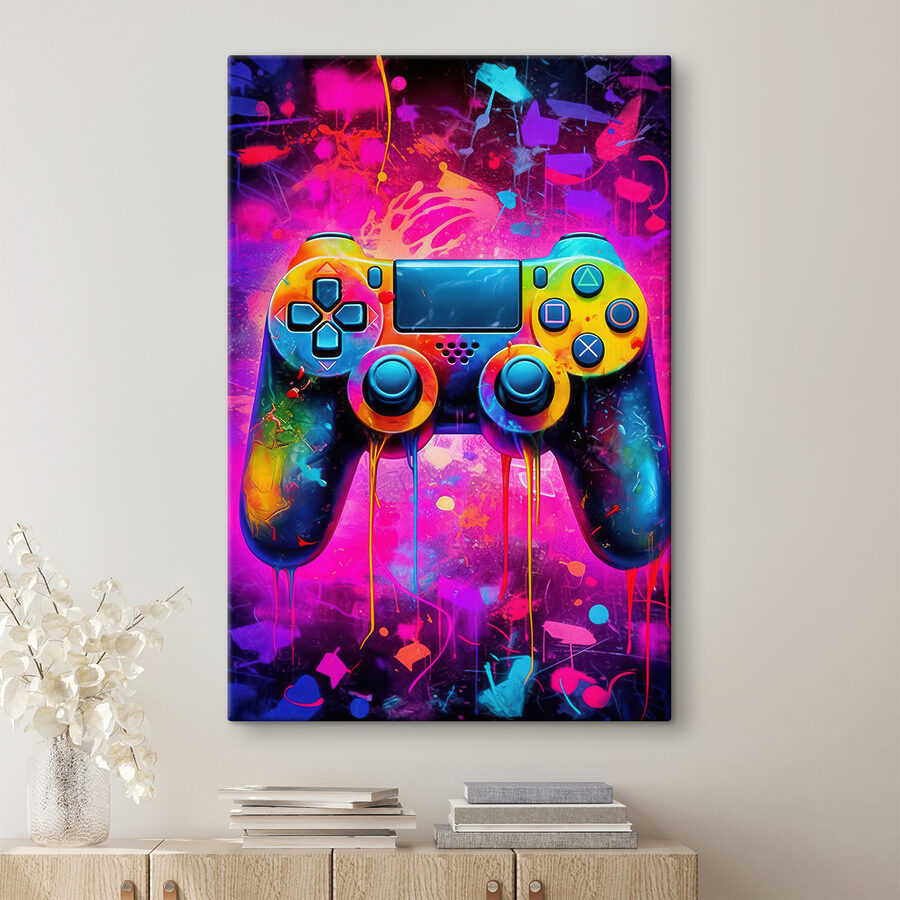 Scufundați-vă în lumea vie a jocurilor cu pânza “Colorful Video Game Controller”. Este ca și cum un strop de curcubeu s-a ciocnit cu visul suprem al gamerului. Luminoasă, îndrăzneață și plină de personalitate – la propriu! Imaginează-ți această capodoperă luminându-ți camera de jocuri. Prietenii s-ar putea să se oprească la jumătatea nivelului și să spună: “Uau, asta e epic!” Perfect pentru a stârni creativitatea sau doar pentru a arăta dragostea pentru jocuri cu o latură de artă. Nu este doar artă; este un level-up pentru peretele tău. Începeți jocul!