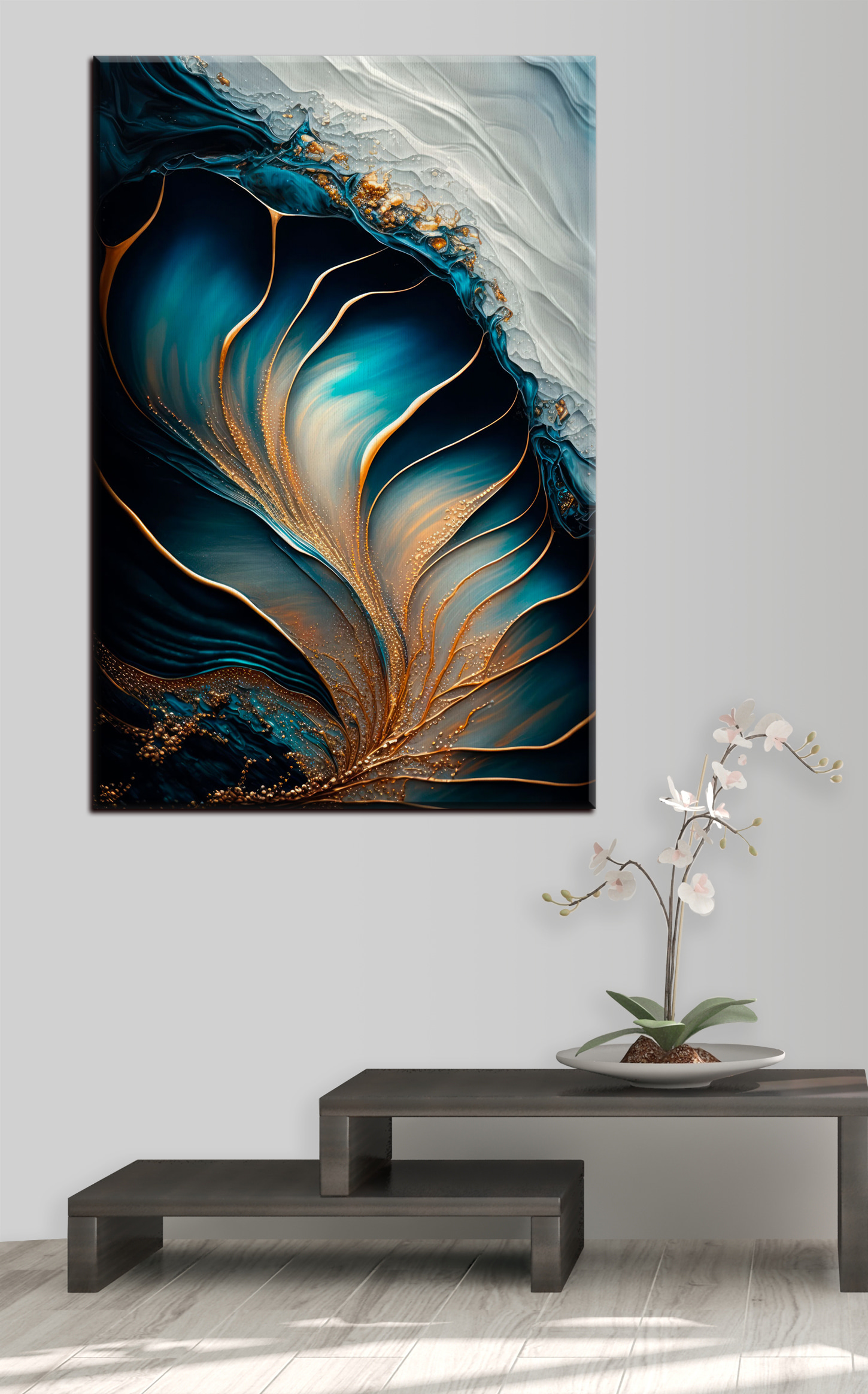 Perfectă pentru cei cărora le place să se scufunde în nuanțe profunde, liniștitoare, cu un strop de energie. Agățați-l în camera de zi sau în birou și priviți cum aduce un strop de fler artistic zilei dumneavoastră. Este un starter de conversație, un ridicător de dispoziție și pur și simplu frumos. Scufundați-vă și pierdeți-vă în aceste valuri! 🌊✨