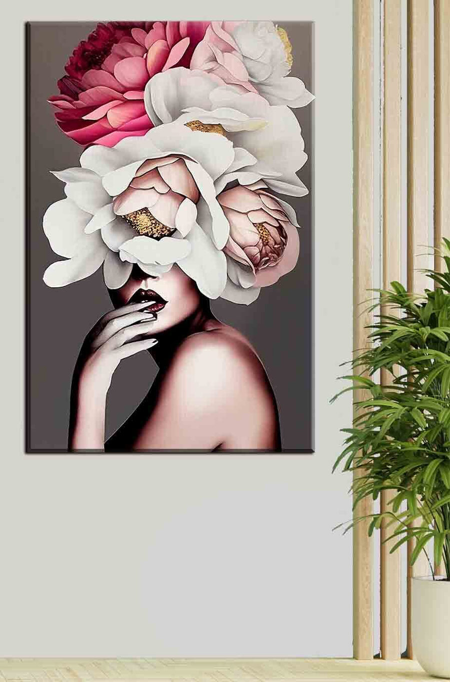 Cufundați-vă în alura de vis a “Eleganța florală îmbrățișează silueta misterioasă”. Această imprimare uimitoare pe pânză îmbină eleganța și intriga într-un mod care va transforma orice spațiu. Imaginați-vă o figură echilibrată împodobită cu un buchet extravagant, înflorit – acestea nu sunt doar flori; sunt o explozie artistică de culori și texturi! Perfect pentru a adăuga o notă de mister capricios sufrageriei sau dormitorului dumneavoastră. Imaginați-vă că vă treziți în fiecare zi în fața unei frumuseți atât de captivante – pur și simplu încântătoare! Este ca și cum ai avea o grădină secretă în casa ta. Te-ai îndrăgostit deja? Ia-o pe a ta acum și lasă-ți pereții să șoptească rafinament și magie.