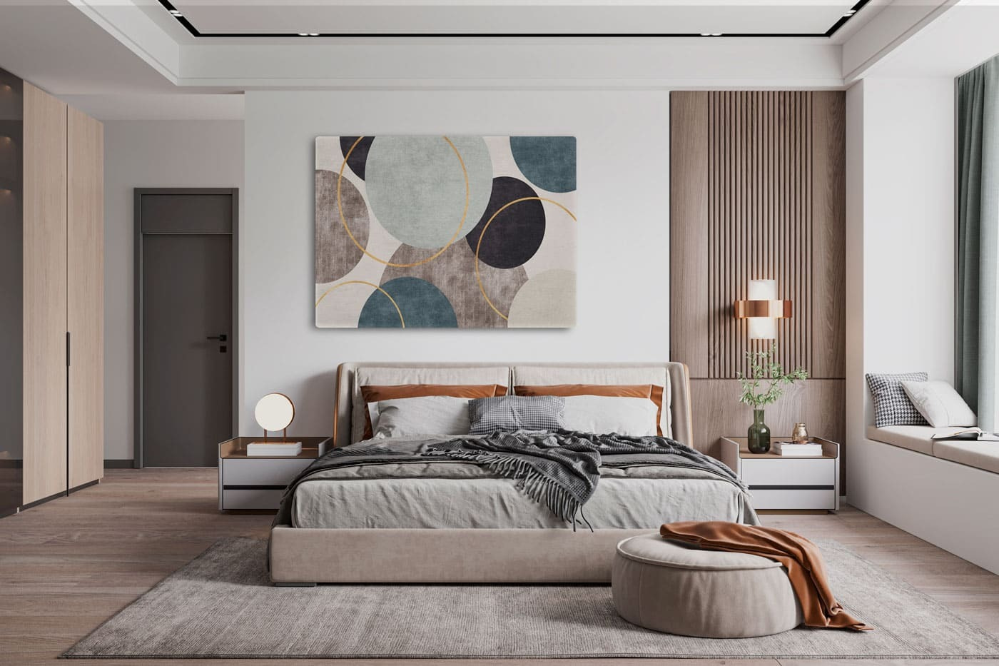 Scufundați-vă într-o lume în care formele se joacă de-a v-ați ascunselea! Acest print pe pânză, cu cercurile și inelele sale abstracte fermecătoare, promite să înveselească orice spațiu. Imaginați-vă că intrați într-o cameră și simțiți cum vă pătrund acele vibrații liniștitoare. Amestecul de tonuri pământii creează o atmosferă relaxată, perfectă pentru a savura o cafea sau pentru a vă gândi la următoarea idee importantă – fără a lăsa energia haotică a copiilor să vă afecteze. Este ca o îmbrățișare confortabilă pentru pereții tăi! Ideal pentru acel spațiu gol stânjenitor sau pentru a iniția o conversație. Cine nu ar vrea să discute despre cercuri? Adăugați un strop de farmec unic casei dvs. cu această piesă încântătoare.