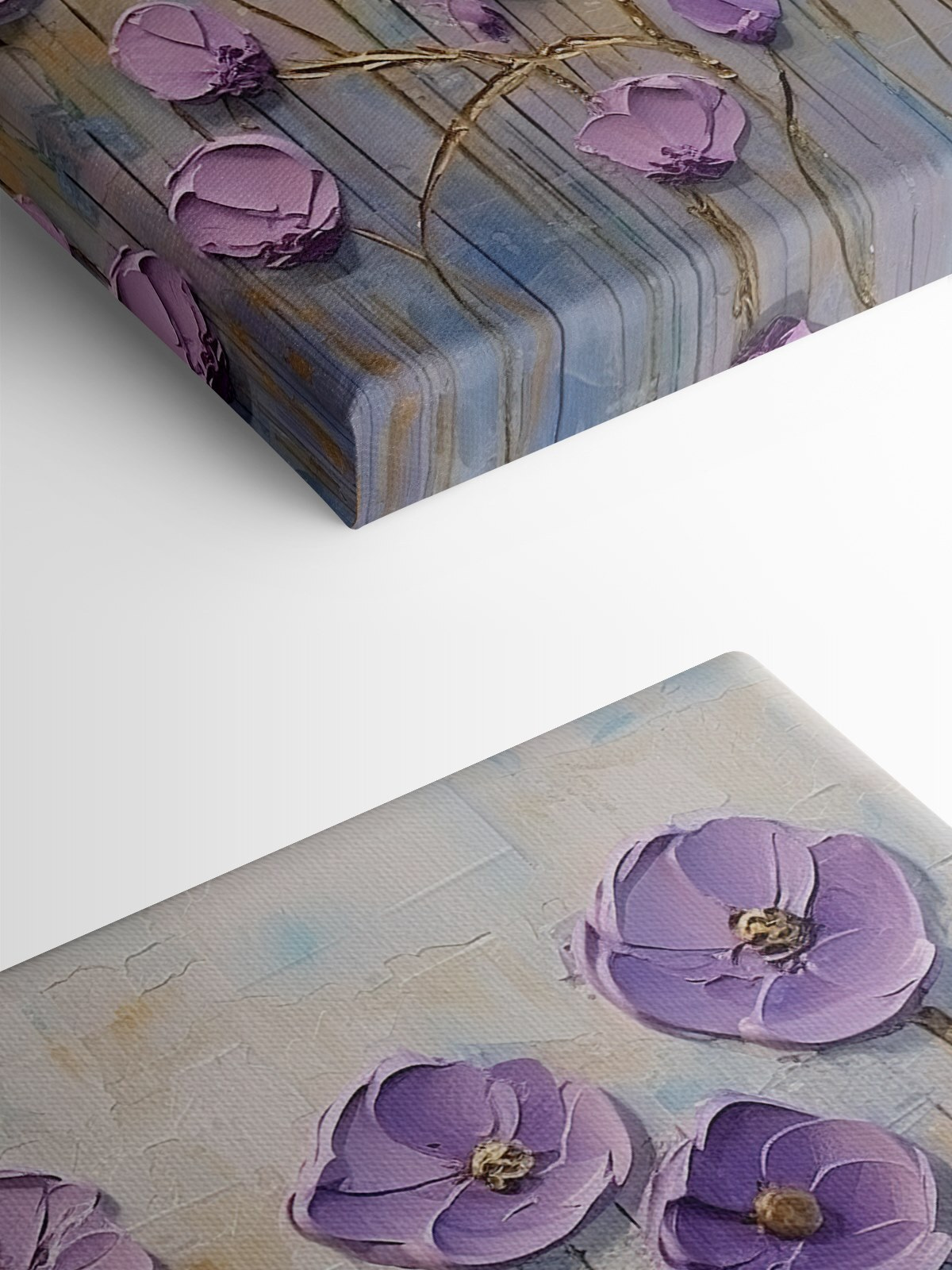 Aruncați o privire la acest minunat print pe pânză! Acesta prezintă flori în nuanțe de violet și roz care aproape par să sară de pe pânză. Imaginați-vă acest tablou în camera dvs. de zi, luminând spațiul cu nuanțele sale blânde și liniștitoare – un fel de a aduce un pic de primăvară în casă, chiar și în zilele mohorâte. Această piesă ar fi perfectă pentru oricine iubește un pic de natură și culoare în decorul casei sale. Este ca și cum ai avea un pic de grădină, fără a mai fi nevoit să o uzi. Ideală pentru a face orice cameră să pară instantaneu mai frumoasă și mai pozitivă!