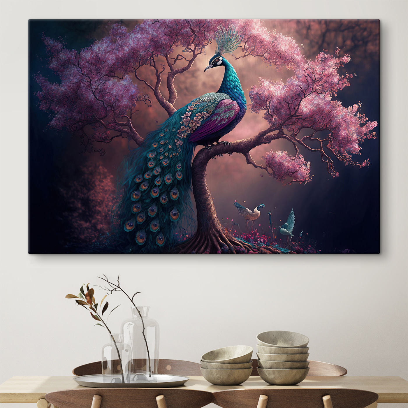 Imaginați-vă un strop de culori radiante care să vă lumineze camera – chiar acum. Această imprimare pe pânză a unui păun maiestuos cocoțat pe o ramură de copac este perfectă. Toate penele acelea luxuriante? Scandalos de frumoase. Și acele flori? Practic îți șoptesc primăvara în spațiul tău. Aproape că ai putea auzi un foșnet slab de frunze sau să prinzi umbra unei brize. Nu este doar artă, este și o stare de spirit. Un memento zilnic pentru a îmbrățișa frumusețea, chiar și în cele mai simple lucruri. Serios, de fiecare dată când treceți pe lângă ea, probabil că veți zâmbi. Perfect pentru o bucurie instantanee în orice cameră!