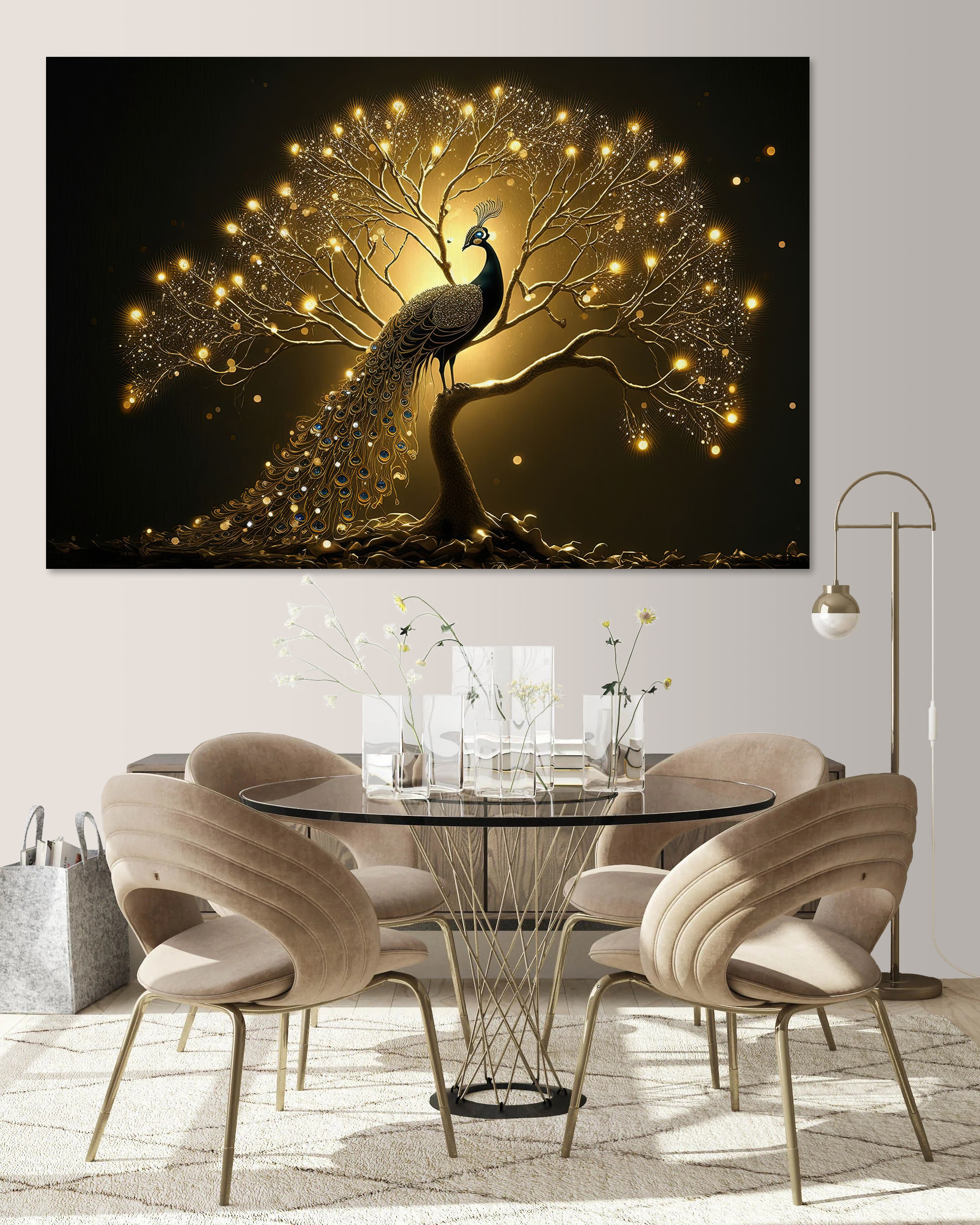 Imaginați-vă că intrați în sufragerie și observați această pânză atrăgătoare – o pasăre cocoțată pe o ramură de copac. Este ca o îmbrățișare caldă, strălucitoare pentru pereții dvs. Detaliile delicate și complicate ale păsării și ramurile luminoase adaugă imediat grație și farmec. Este ca și cum natura a decis să organizeze o petrecere chiar în casa ta.