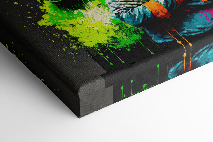 Aruncați o privire la această imprimare pe pânză cu un trio de maimuțe cu căști și hanorace! Perfectă pentru oricine iubește animalele cu o latură cool, această lucrare de artă îmbină culorile vibrante cu o notă de fantezie. Este ca și cum aceste maimuțe au ieșit direct dintr-o pictură murală de artă stradală și au intrat în sufrageria ta. Imaginați-vă acest lucru agățat pe perete, adăugând un strop de personalitate și un zâmbet mare ol’ pentru oricine îl vede. Fie că este pentru un birou, o cameră de cămin sau acea bucată goală de perete la care te holbezi de săptămâni întregi, va stârni discuții. Credeți-ne, este la fel de distractiv precum pare!