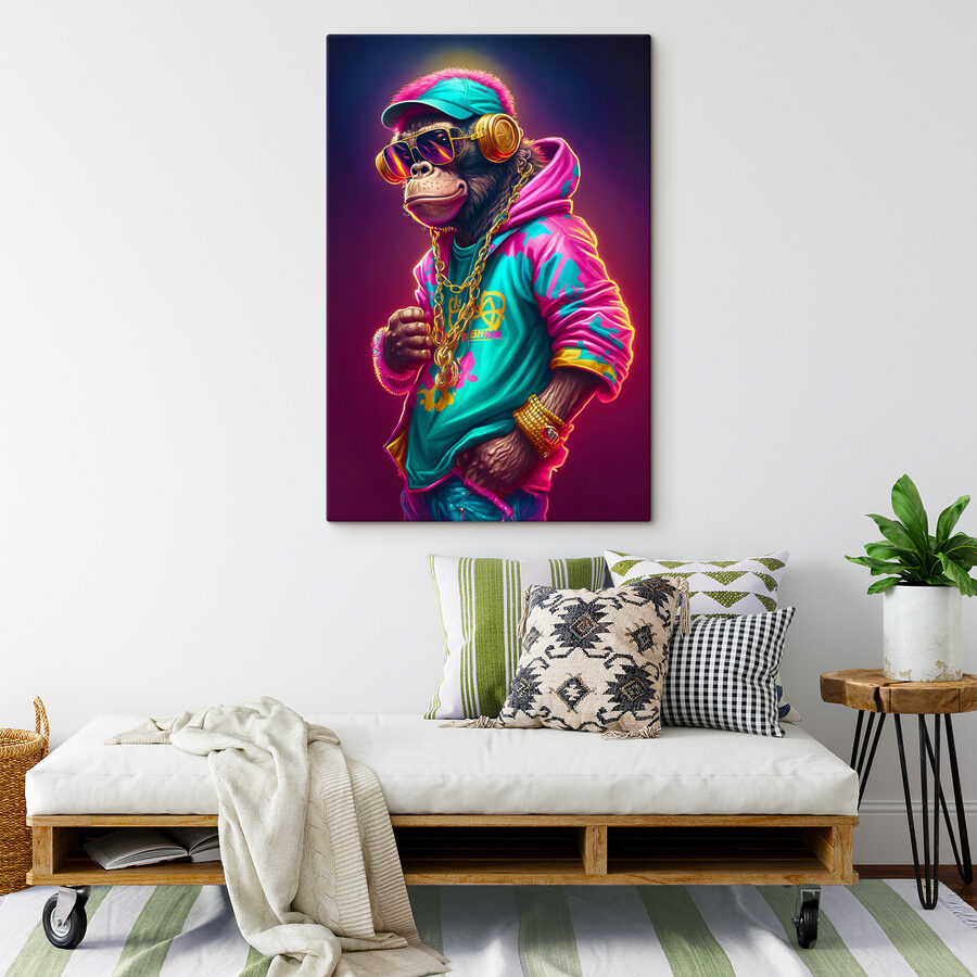 Uită-te la această imprimare pe pânză: o maimuță super elegantă cu pălărie și ochelari de soare, care are toate vibrațiile răcoroase. Perfectă pentru oricine este pasionat de decoruri ciudate și amuzante. Imaginează-ți această maimuță colorată și amuzantă pe peretele tău – e ca și cum spațiul tău a devenit brusc mult mai interesant și mai jucăuș. Detaliile sunt vibrante, cu tușe de acuarelă roz și verde turcoaz, și este ceva atât de capricios și captivant în legătură cu aceasta. Probabil că vă veți trezi zâmbind de fiecare dată când o priviți. Este ca și cum această maimuță cool aduce un pic de farmec și caracter obraznic în camera ta, fie că este vorba de camera de zi, birou sau chiar camera copilului. Pur și simplu sparge norma și dă pereților tăi un vârf de personalitate. Cine ar fi crezut că o maimuță poate arăta atât de bine, nu-i așa?