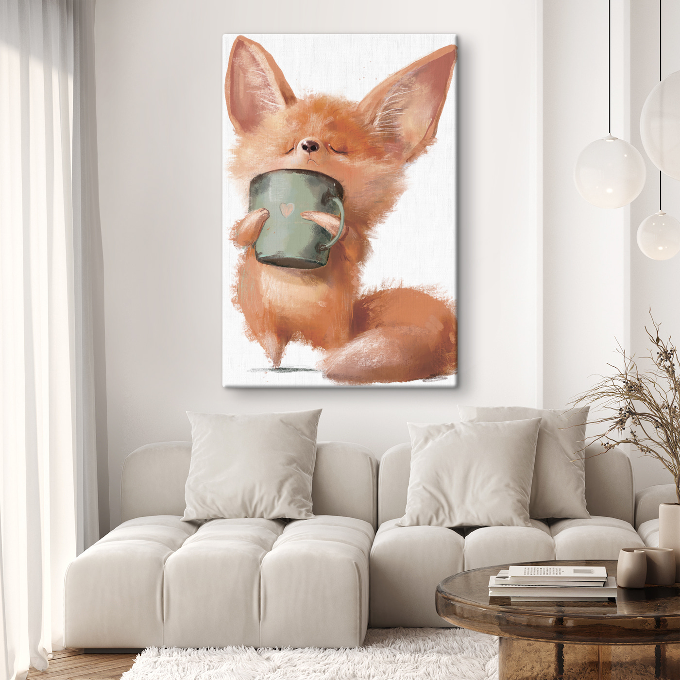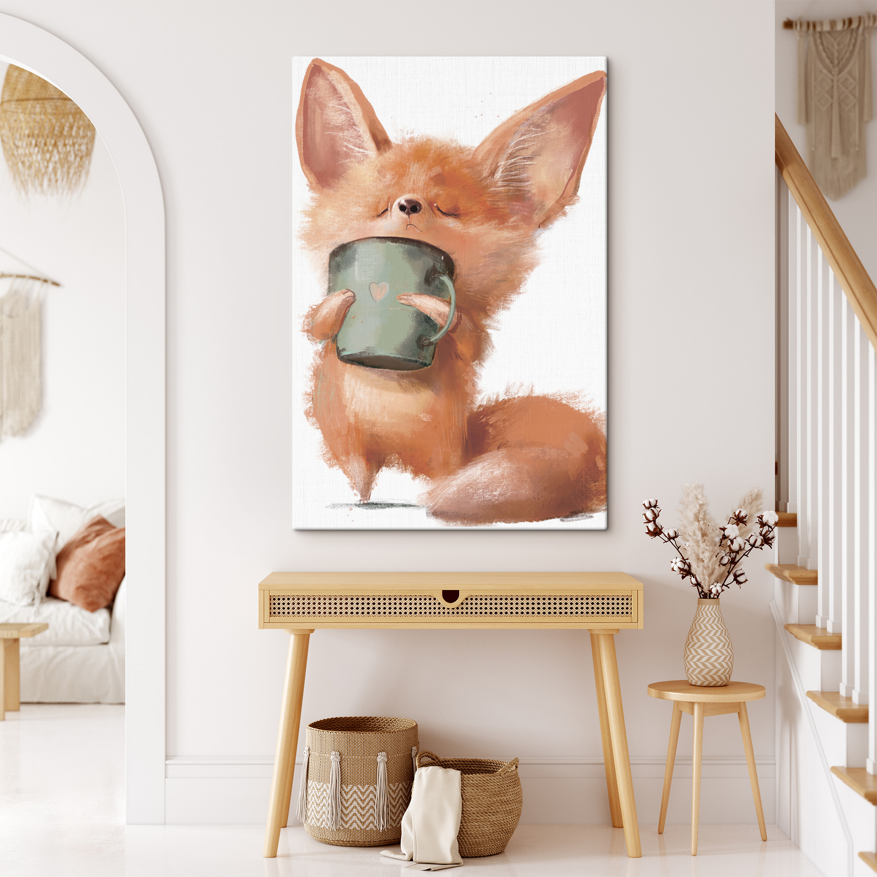 Pășiți într-o lume plină de farmec cu această încântătoare imprimare pe pânză ce prezintă o vulpe fennec adorabilă savurând o băutură caldă. Imaginați-vă acest micuț, cu ochii închiși, cât se poate de mulțumit – perfect pentru a adăuga o notă confortabilă oricărei camere. Este genul de piesă care stârnește bucurie și aduce un zâmbet, fie că se află în camera de joacă a unui copil sau într-un colț confortabil al spațiului dvs. de locuit. Imaginați-vă după-amiezi leneșe petrecute cu o ceașcă de ceai, cartea preferată și această vulpiță care veghează asupra dumneavoastră. Este ca și cum ai avea un companion vesel care îți încălzește inima și îți luminează pereții cu fantezie. Luminează-ți spațiul cu această artă fermecătoare care cu siguranță va crea o conversație sau două!