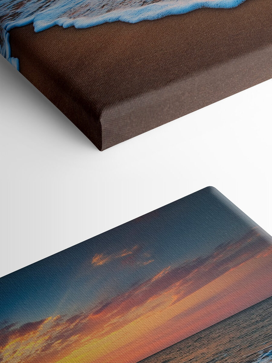 Imaginează-ți că privești această imprimare uimitoare pe pânză, “Sunset Waves Embrace the Shore” – e ca și cum ai putea auzi zgomotul liniștitor al valurilor și simți nisipul cald sub picioare. Această operă de artă este un amestec perfect de culori vii și vibrații liniștitoare. Fie că vă decorați sufrageria sau căutați ceva care să vă facă spațiul de lucru să se simtă mai puțin ca… locul de muncă, această gravură are ce vă trebuie. Gândiți-vă la serile confortabile de pe plajă, când apusul de soare pictează cerul în portocaliu și roz, iar oceanul vă îmbrățișează cu spumă. Ideal pentru cei care tânjesc după o bucată de liniște marină și de plajă chiar la ei acasă. Deci, de ce să nu aduceți o notă de liniște de coastă în interior cu această pânză populară de mare și plajă?