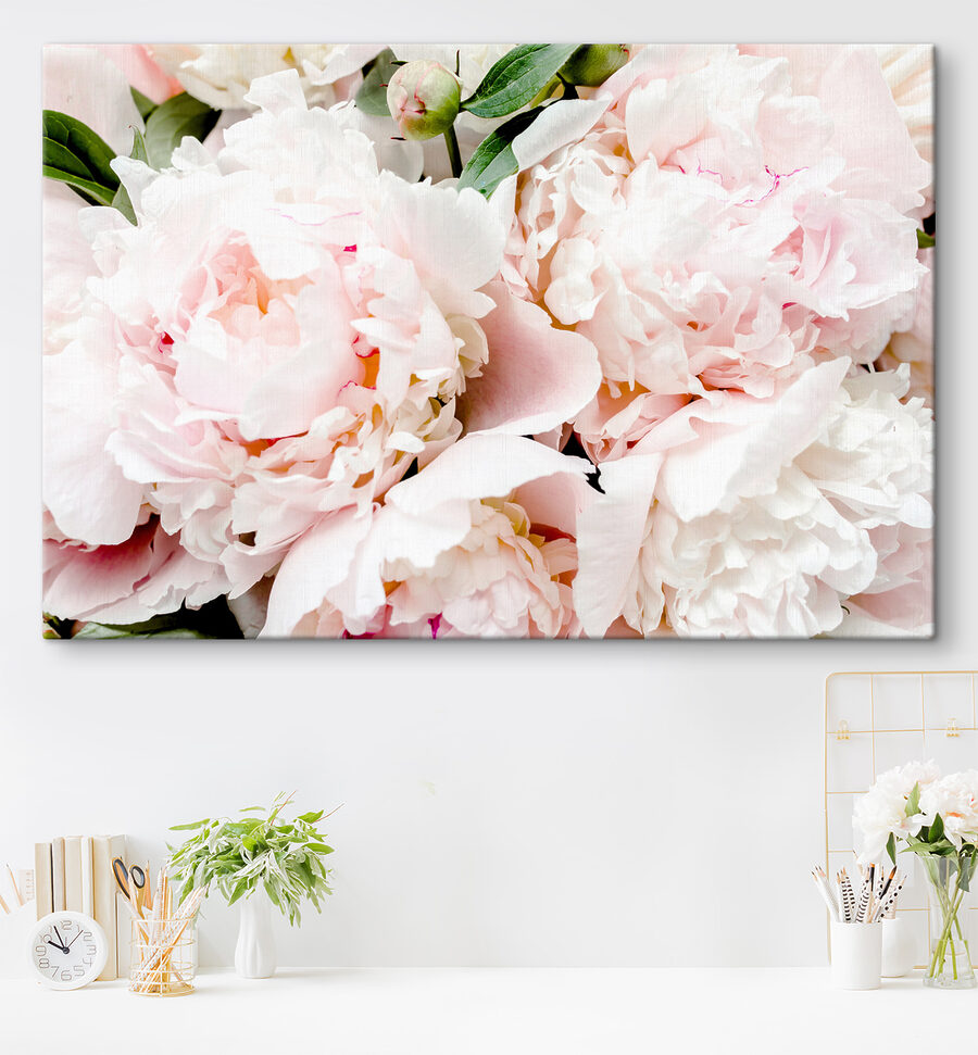 Transformați orice perete într-un tărâm al minunilor înflorit cu acest print pe pânză cu bujori roz suav. Imaginați-vă aceste flori pufoase izbucnind cu viață, aducând un sentiment de calm și bucurie spațiului dvs. Este ca și cum ai avea o grădină fără a fi nevoie de udare sau soare! Perfectă pentru un living confortabil sau un dormitor senin, această operă de artă șoptește relaxare. Prietenii vor admira atingerea elegantă și este, de asemenea, un excelent starter de conversație. În plus, cui nu-i plac bujorii? Sunt ca niște confetti din natură, care celebrează frumusețea în forma sa cea mai pură. Agățați-o, stați pe spate și lăsați farmecul să se desfășoare.