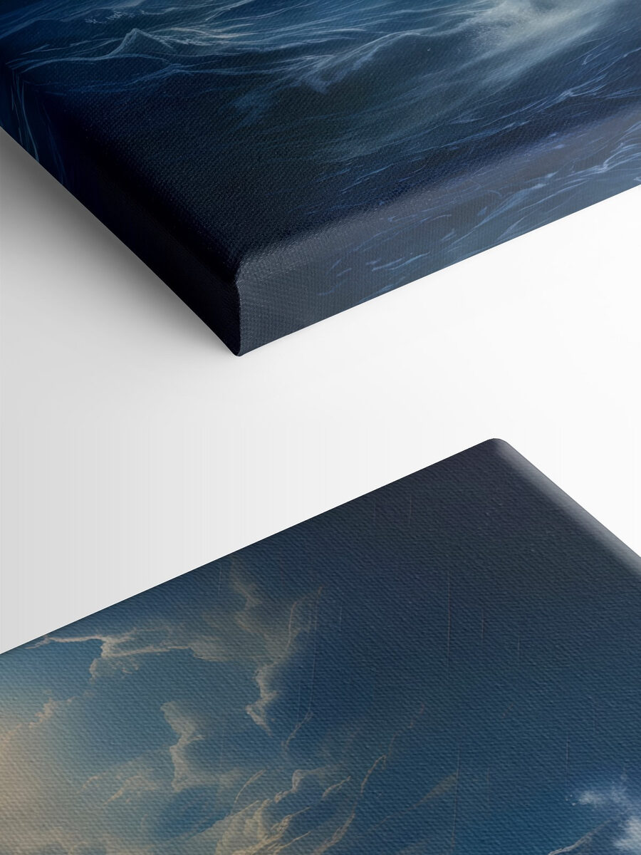 Aduceți un pic de misticism în spațiul dvs. cu această impresionantă imprimare pe pânză a unei figuri stând în apă, scăldată în strălucirea luminii lunii. Imaginați-vă seninătatea unei seri liniștite la malul mării, cu valurile blânde lovindu-vă picioarele în timp ce priviți în imensitate. Această operă de artă surprinde perfect acel moment – este ca un memento blând pentru a te opri și a reflecta. Albastrul bogat și norii moi creează o atmosferă de vis care invită la gânduri liniștite. Agățați-o și lăsați-o să stârnească conversații, să evoce emoții sau pur și simplu să servească drept fundal fermecător pentru serile dvs. confortabile. Cine nu s-ar simți puțin inspirat uitându-se la asta? O atingere minunată pentru orice cameră, care aduce natura și un strop de aventură chiar în casa dvs.